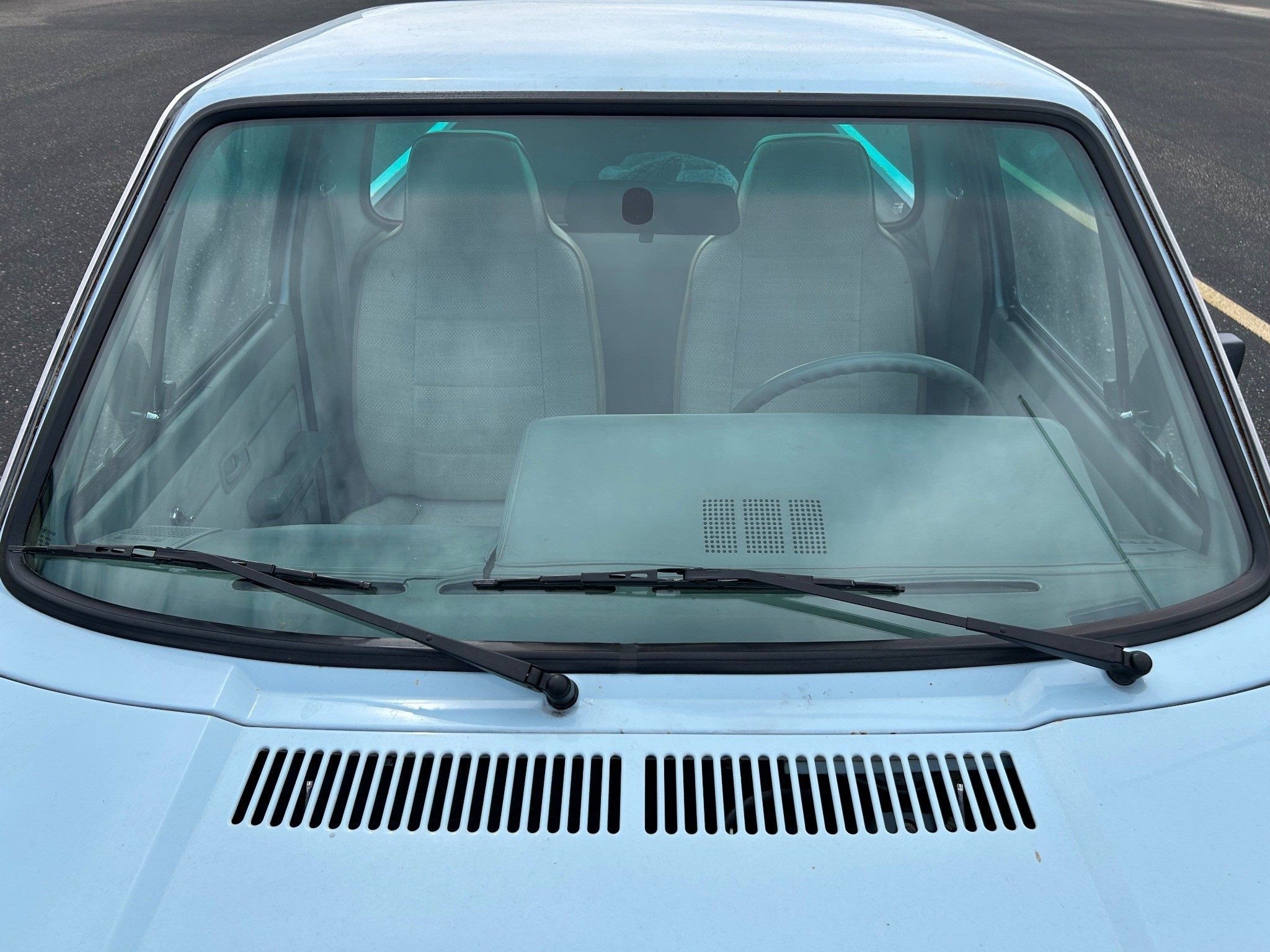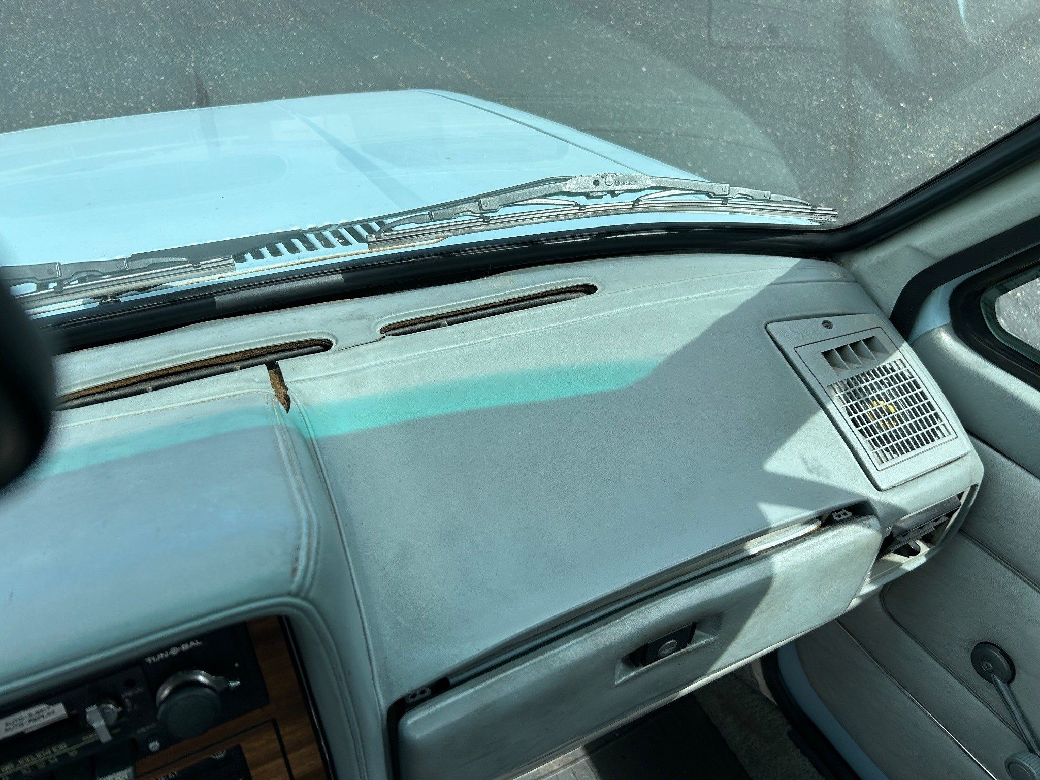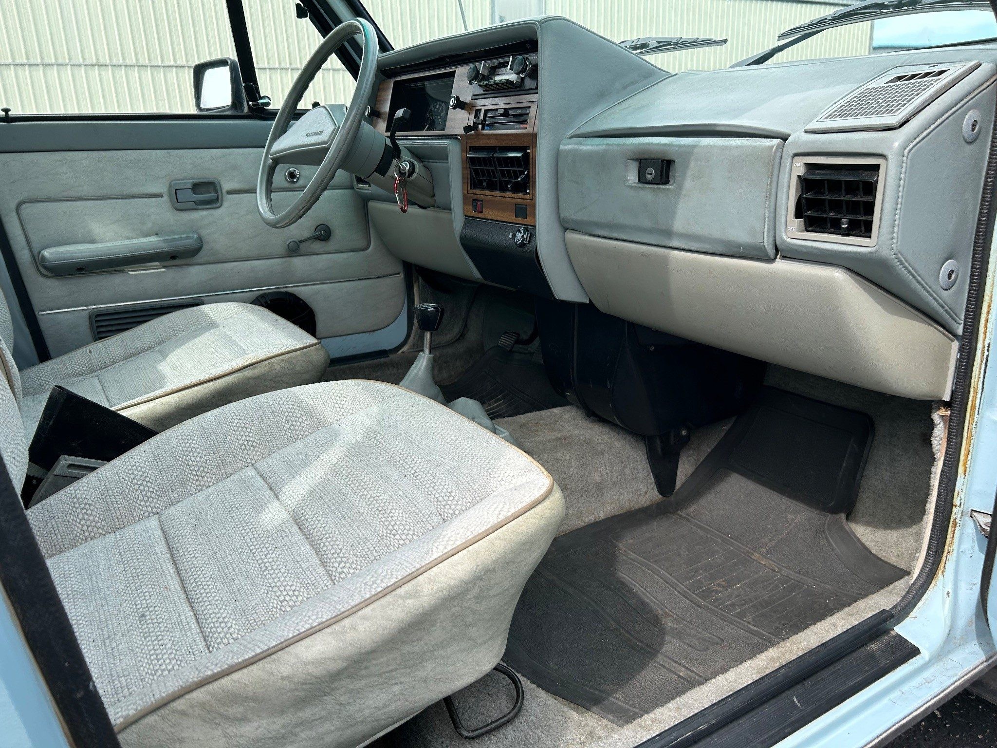There may be a bit of fading here due to the fact that this rock-solid VW pickup was bought in New Mexico and now resides in California. The glorious sun has faded things a bit, but has seemed to otherwise preserve the precious metal bits. The underside looks amazing, as expected. This one has a five-speed manual because it has a diesel under the hood. Otherwise, it would have had a four-speed manual, an automatic wasn’t available in this generation. It also has a new headliner.