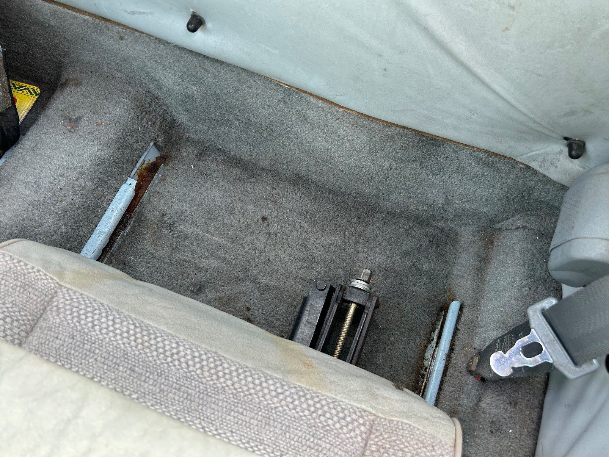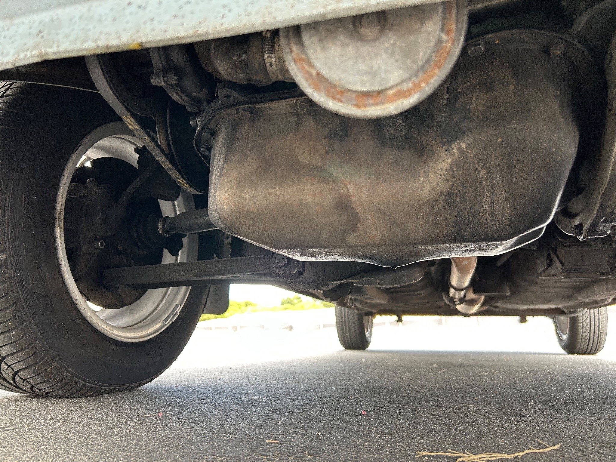 What’s wrong with this car? Being that old, everything can’t be perfect, so please tell us what’s wrong. After a casual glimpse of the photos, I noticed that the right side of the rear bumper is pushed in; both the transaxle and the sump are showing leaks; and rusty seat rails? In a car that spent its entire life in the desert? My only guess about how that happened is that its window gaskets rotted out in the sun and the floor got wet from rain — for a pretty long time before the gaskets were replaced.