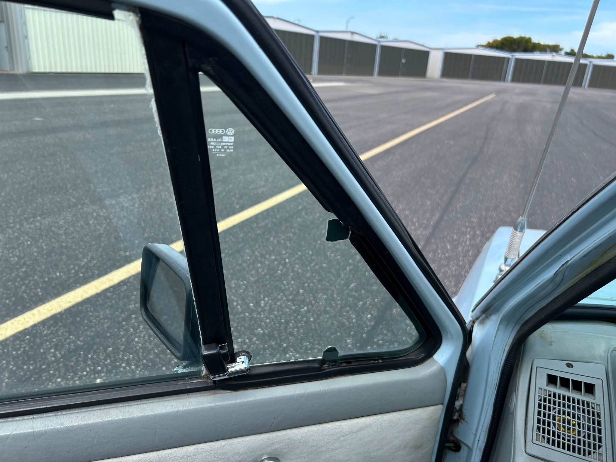 It starts easily. This is the first diesel I’ve owned. It vibrates at idle. The mechanic here said it’s normal. When you bring in throttle it smooths out. It shifts fine except I think a linkage kit may be in order. Going from 4th to 5th I have to be deliberate, doesn’t naturally fall into place. It drives straight, brakes straight. It’s quite smooth on the highway. Motor just pulls along. The 5-speed keeps the rpm low at 65. Under the hood, it’s missing its timing belt cover, the R12 a/c could be converted and/or charged, I’ve not diagnosed it, only verified that the compressor engages when the switch is on. Regarding the body, painting it would be nice, or if you like original paint you could touch it up. There’s surface rust under the antenna, a small spot at the bottom of the rear window rubber, and paint missing in drivers door handle well. Something I am amazed by is straightness of the body. When I replaced the windshield it had a Kirtland AFB sticker on it. I imagined someone parking it on the base daily perhaps in a place where it couldn’t get dinged. So, it’s a solid car that has been taken care of. But, it’s old. There will be things to fix or improve. But that’s what draws me to old cars. That’s the person that this car is for. Be it, restore, modify, or drive and enjoy.