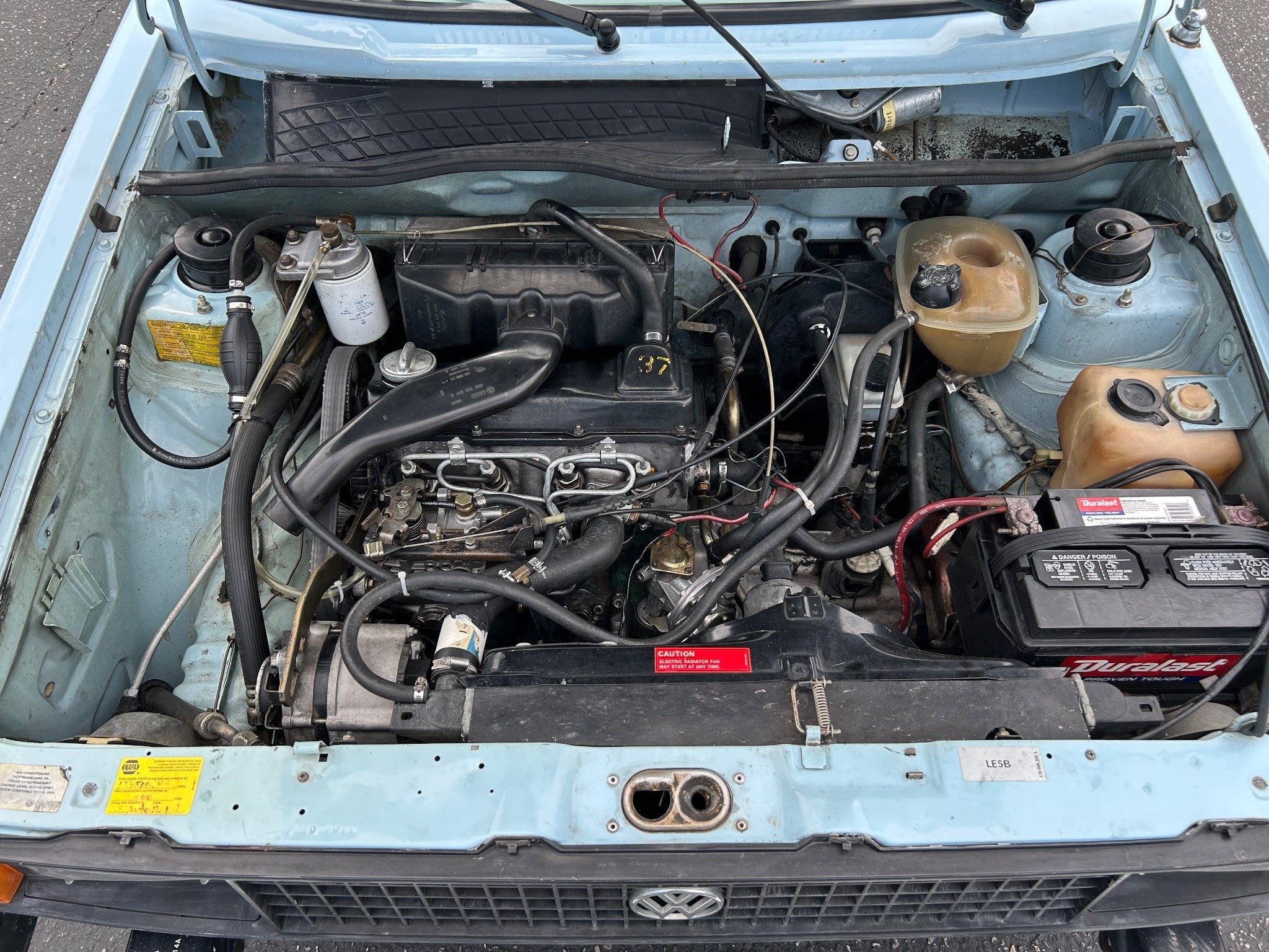 My rabbit pickup was white, a more appropriate color for a rabbit perhaps. My custom plate was “HARERIG” These little diesel engines were designed for refrigerated trailers in Mexico as I recall, and are very durable. The tailgates were easily, and often stolen so that may be what happened here. The dealer even kept a few in stock. This will be a great little truck for someone and I think the high bid will surprise folks. What do you think it will sell for?
