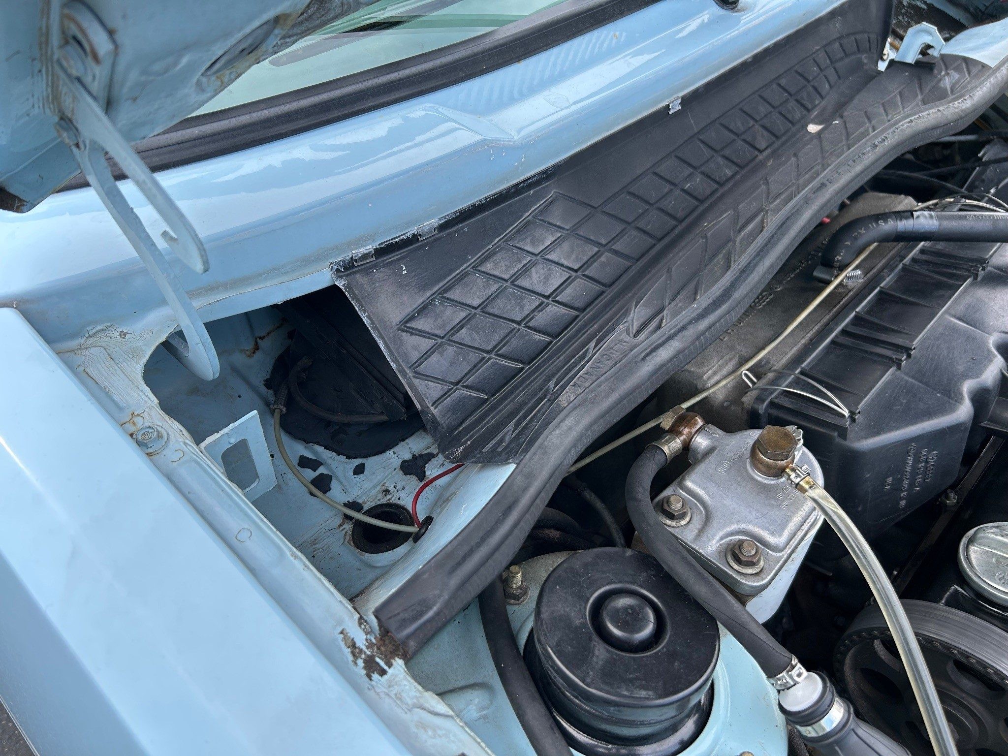 I fixed the rear bumper. Bracket was bent on right side rear bumper. Also want to mention, under the hood, the brake master appears wet. That is Corrosion X that I brushed on it. It is cast iron and it needs rust preventative on it. It is not leaking as the wetness would suggest. Also, today I found that the internal bracket for the passenger door stop is broken. The door swings fine and stops as it should. But that will need fixed/replaced. I’m trying to add pix.