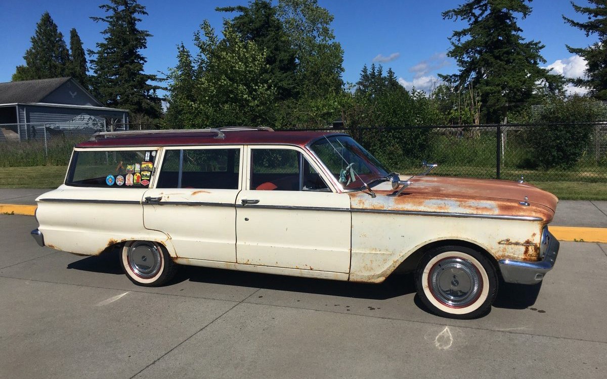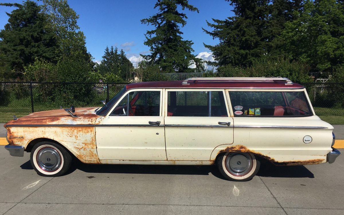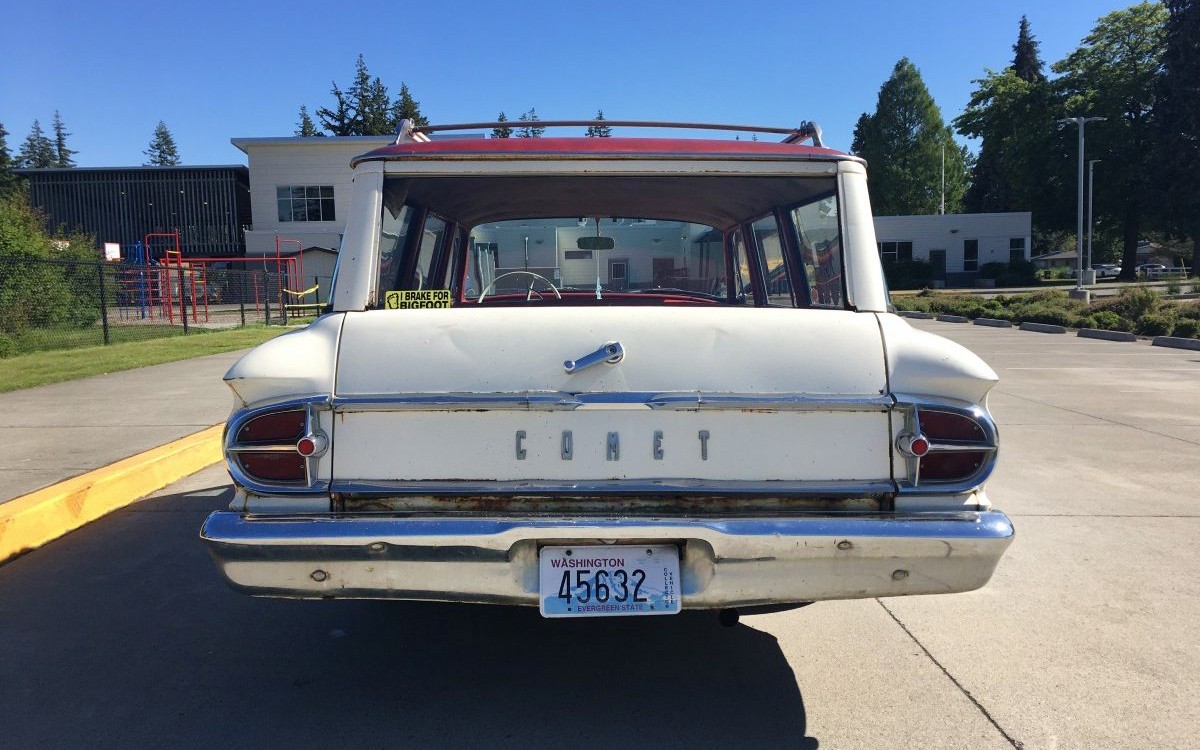These are more scarce than most realize. The Falcon outsold these about 4:1 or better. Being a first-year Comet, IMHO it’s very desirable, and being a wagon even more so. (If it were a 2dr., you could almost name your own price!) I would rebuild the 3-on-the-tree setup, and reupholster the seats with NOS fabric that’s available. Hubcaps/wheelcovers may be tough to find, but not impossible. Patch the rust, repaint in the original white/red roof and you’d have an excellent first entry into the old car hobby for yourself! Most people at shows would mistake it for a Falcon!