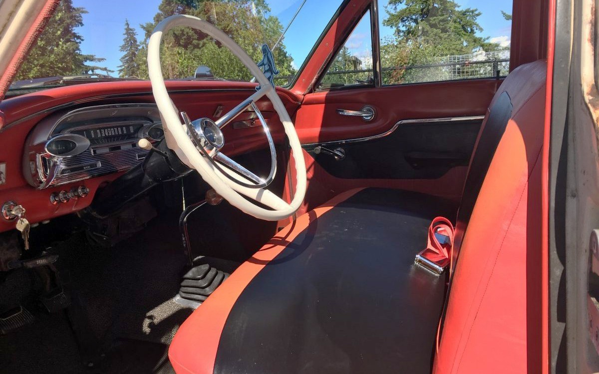 Do I need to get out more? This is the first one of these I’ve ever seen! Neat little wagon! Kudos to the owner for saving the three-on-the-tree components. Never really understood the compulsion to move everything from the column to the floor. Nice find.