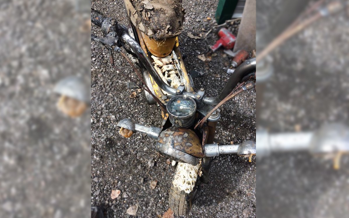 The Yamaha Chappy is actually a nice scooter and those of us who love these little things don’t think that nice-scooter is an oxymoron. It’s not a hairy-knuckle grumbling and angry Harley decked out in all-black and skulls. “Hey, dude, check out these death-is-cool chrome skulls that I put on my black Harley!” “Sweet, man, I also have skulls on my black Harley!” The only skull on this Chappy will be the one that you preserve by only going 30 mph and by wearing a helmet. Yamaha also made an 80 cc version which would be much better for city streets. Like most scooters of this size, it’s best for college campuses or in the country, or maybe neighboorhood use. I’m not sure if this one will sell for $350 given that once you add in a few hundred dollars worth of new parts and a couple of months of tinkering you could have just bought one that wasn’t melted. Is this pyro project worth fixing?