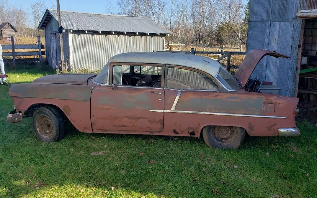 1955 2 door posts are not cheap. I have looked at a bunch of them in the $15,000-$20,000 range and they are not very great condition. This car would make a perfect project car for a gasser/hot rod….but no way would I stick $100,000 into it to make it look factory new again. You could make a Two Lane Blacktop or a Rat Rod Gasser with this car. I’m actually very interested in this car. I have been looking for a 55 for awhile now. Even $10,000 55’s are rough shape.