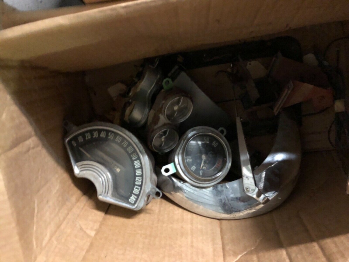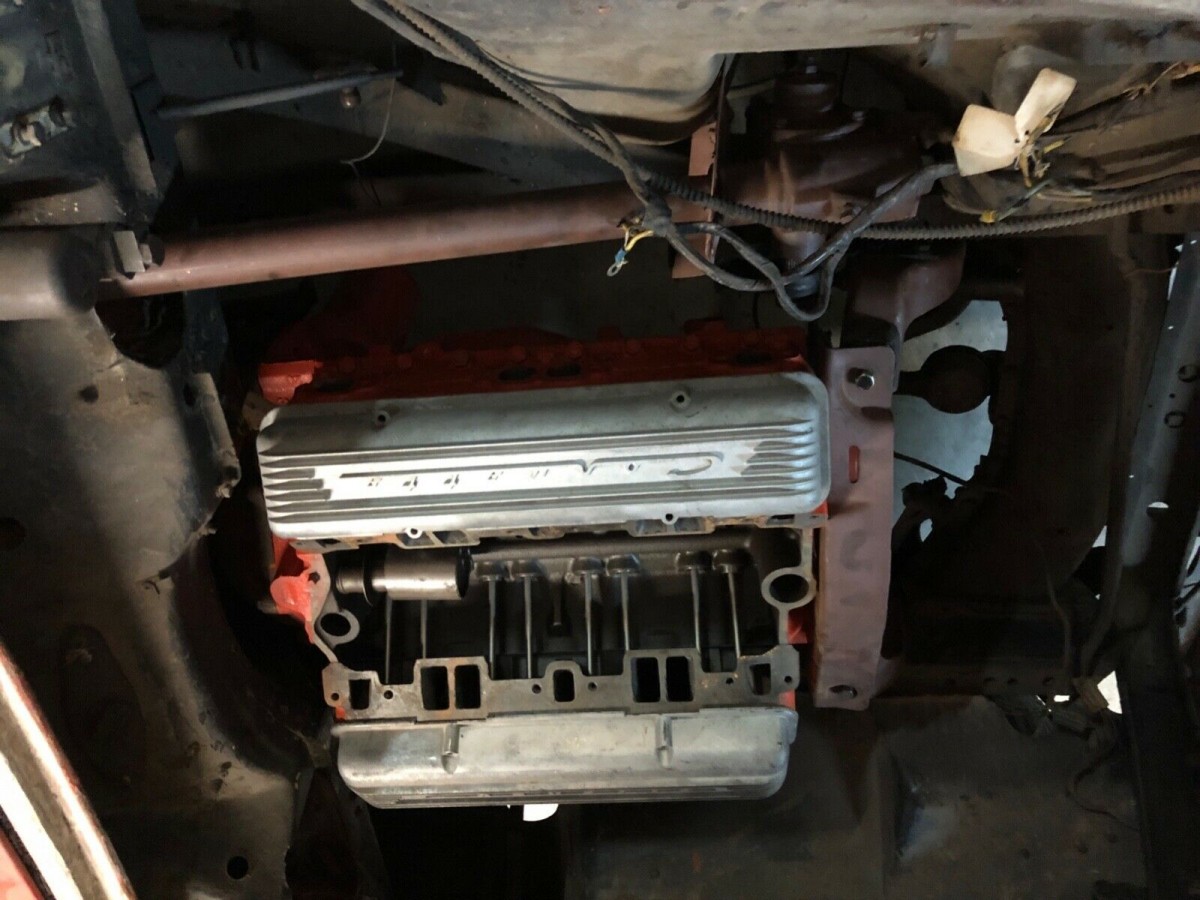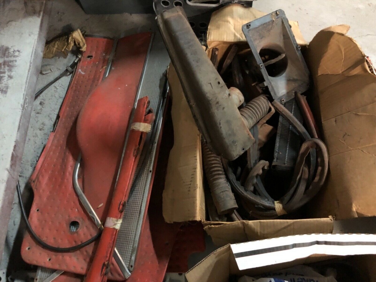 The ‘Vette was mostly stripped down for a paint job that never came. That could have happened a long time ago. Many photos show buckets of parts, but the buyer isn’t going to know ahead of time if it’s all there. The (red) seats are in place, but we don’t get a close look at them. Most other parts are off the car, including the windshield. There’s an engine, or at least most of one, but it’s impossible to know if it’s original. The instruments are in a bucket.