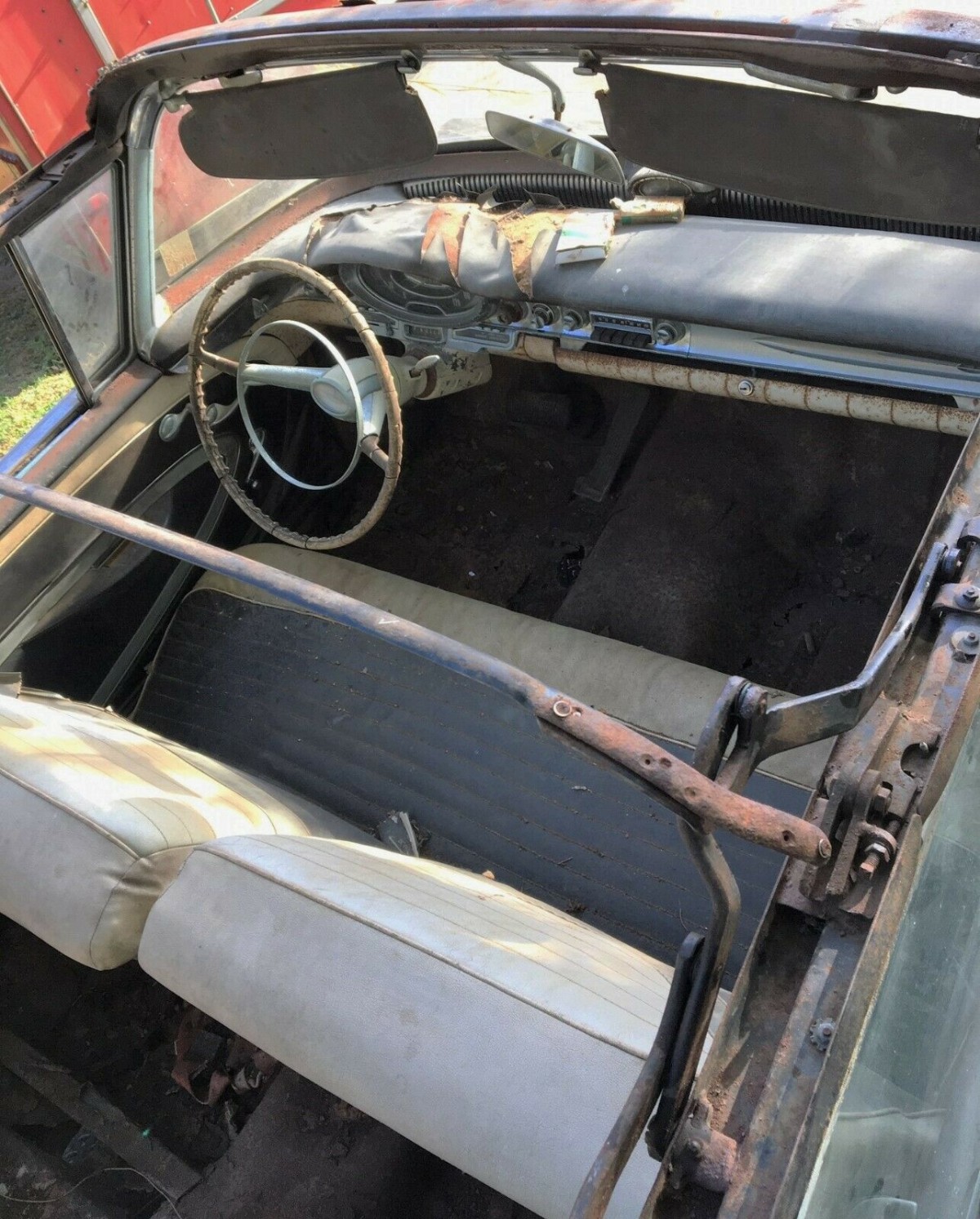 This car is definitely restorable. In fact, it got my juices flowing when I saw it. When I was 14 or so, Ma (who loved convertibles) finally got to buy a used one….a black Olds 88 convertible (similar to the attached picture of a 98 model). She wasn’t a small woman (5’7″ or so, 145 lbs) and this car was a beaut….but it didn’t have power steering. She drove it work every day for 2-3 years, but parallel parking was hard work, so much so that it strained her neck. She finally parted with it in favor of a used 59 Pontiac Catalina convertible, powder blue with same colored top and an aquamarine interior…that I got to drive as a 17 year old fairly regularly. If the instant Olds was closer to me in the south, I’d be very tempted to take it on (despite the mulitude of projects in my yard right now).