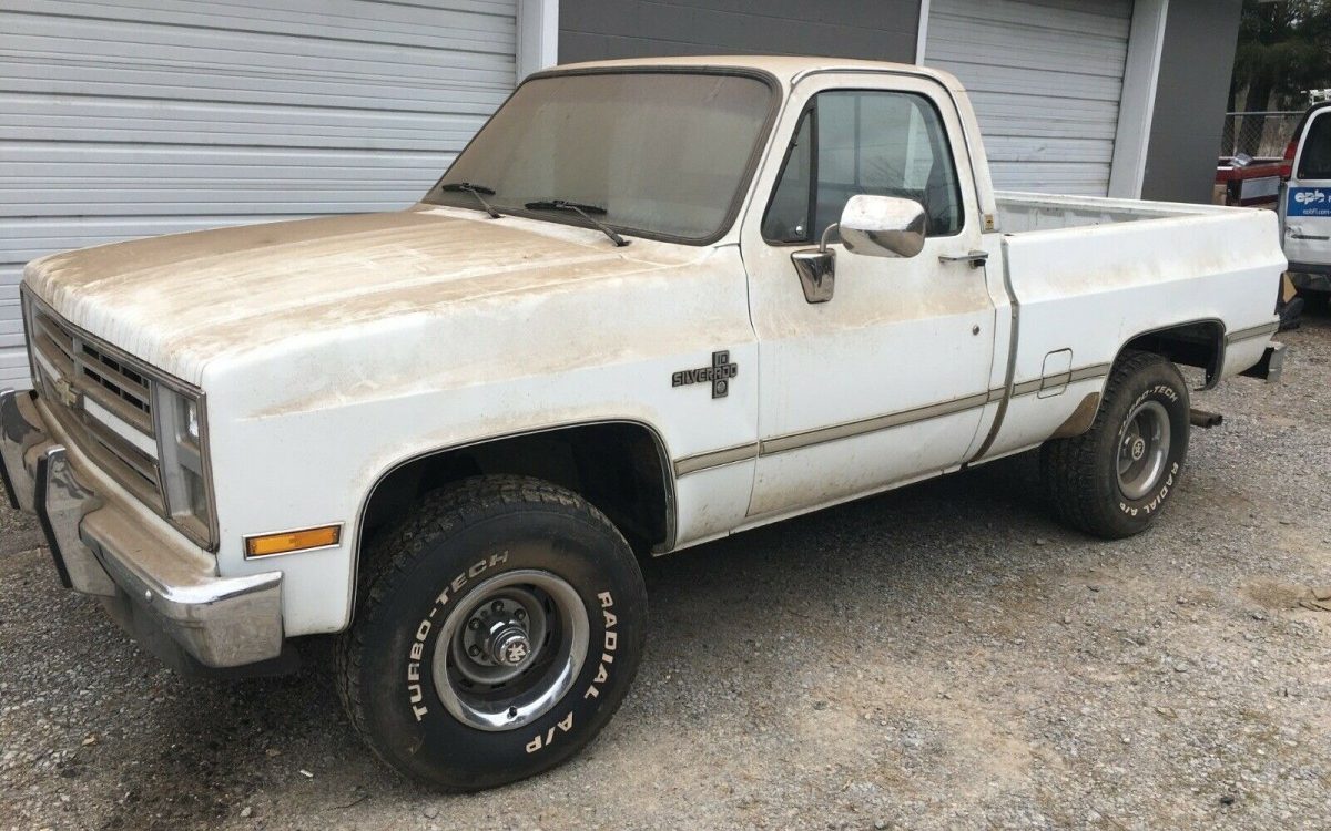 The seller says this Chevy went into the garage in the early 2000s as a very strong running truck with no apparent issues. This doesn’t mean it currently runs, however, as the seller notes it had to be pushed out of storage. The Silverado is loaded up from the factory, with power windows, power locks, air conditioning, dual gas tanks, a tilt steering wheel, and cruise control. The missing taillight is the biggest flaw I can on the outside.