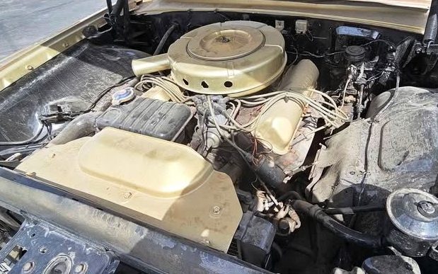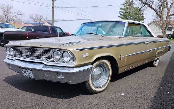 Despite looking like a high school attempt to extend the gold body color as a theme in the engine compartment, the gold-painted air cleaner and rocker covers are true to factory. That panel atop the radiator came black, but only purists would decry an extra splash of gold. Ford offered an array of five transmissions and eight engines for ’63 1/2, including three 390s. The seller describes a three-speed manual with overdrive, which seems a bit odd. I owned a Ford with a similar configuration; my 1985 F250 came with a four-speed manual box, but I only used the “creeper” first gear to pull vehicles from ditches or stumps from the ground. That left three road gears: Low, a 1:1 Second, and an Overdrive third. It did surprisingly well for a small-block powered 3/4 ton 4×4, reaching 60 MPH in around 14 seconds and a consistent 20 MPG on the highway. Expect even better numbers from this Galaxie. Thanks to Wikipedia for some details.