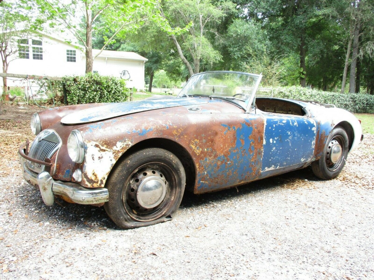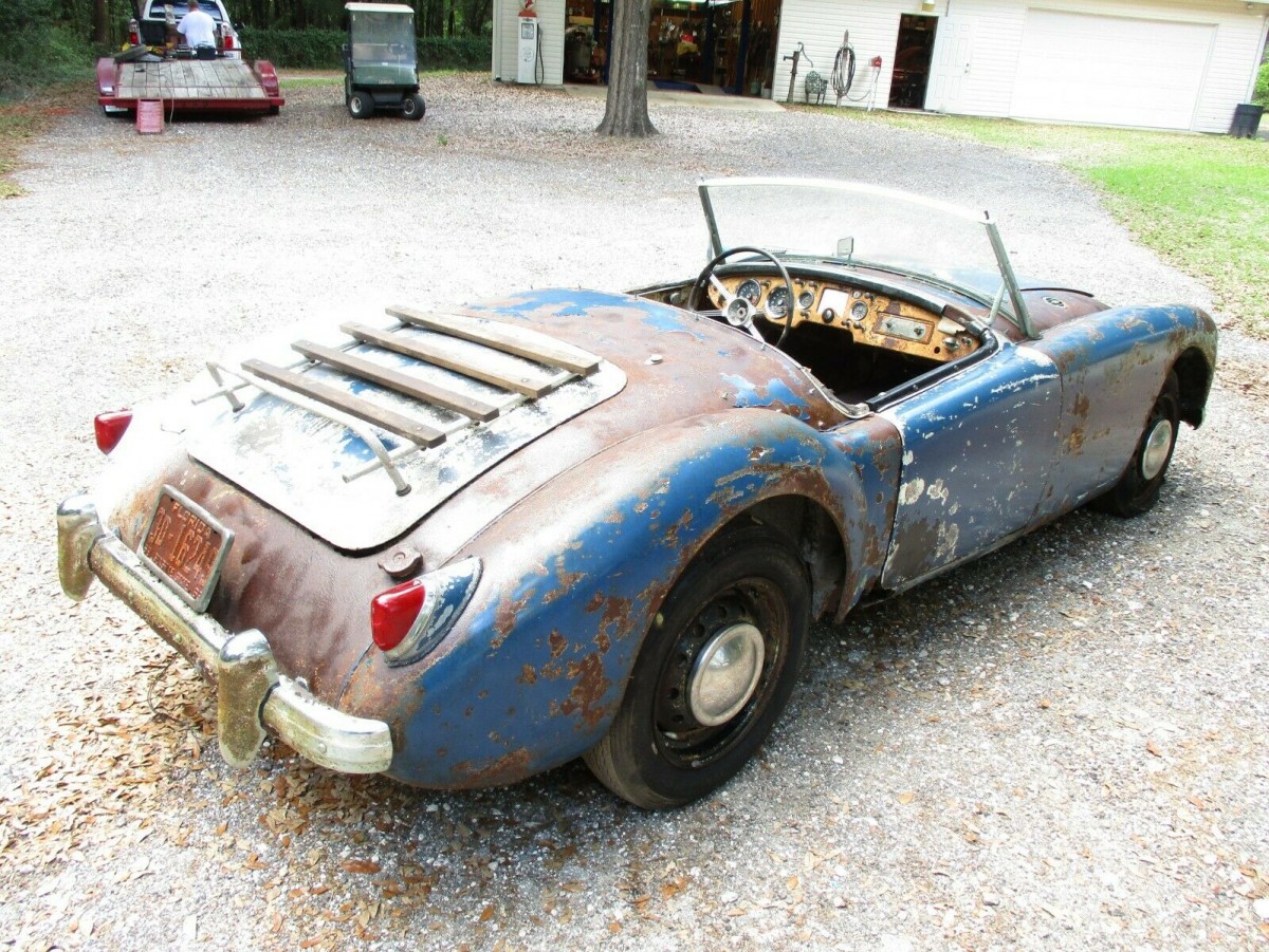 Old British sports cars don’t die, they get faster. Due to the loss of weight from rust, or something like that. Although this ’57 MGA is a little rough around the edges, miraculously this little roadster is more solid than you would expect. Recently recovered from a barn after many years on blocks, this MGA could be a worthwhile project to an MGA fan. With a few days remaining, budding has risen to $2,100 on this roadster. Take a look here on eBay out of Dade City, Florida.