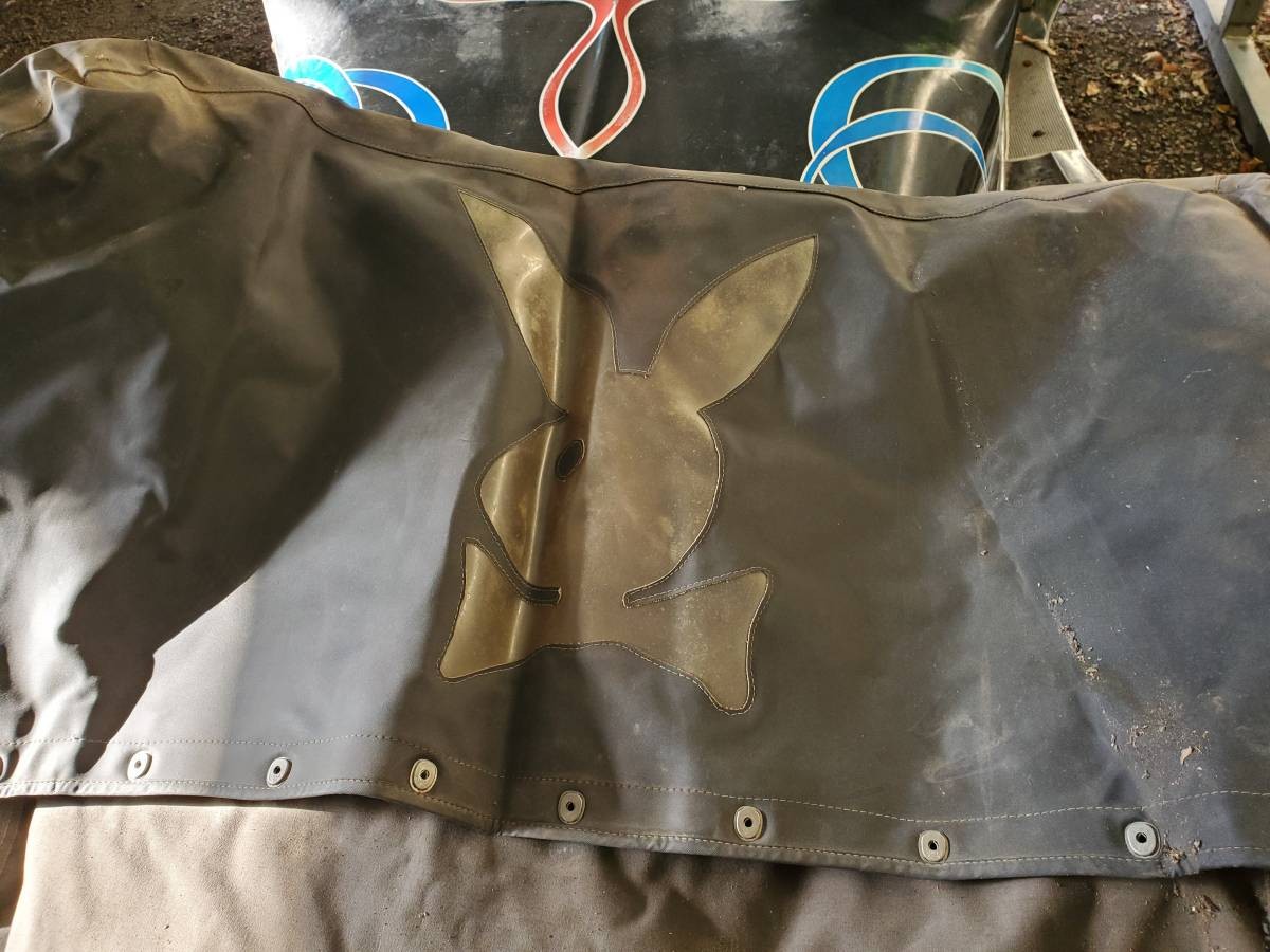 Perhaps my favorite detail is the back vinyl top with the Playboy bunny logo on the rear. I don’t know much about the history of how the famous bunny became associated with hot rod culture, but it’s a perfect in-period look today. This Kellison has a surprisingly sound pan, and while it has no engine, it does retain the four-speed transmission and paperwork identifying it as a 1964 Beetle. Would you strip it down to restore, or preserve as much of the original appearance as possible?