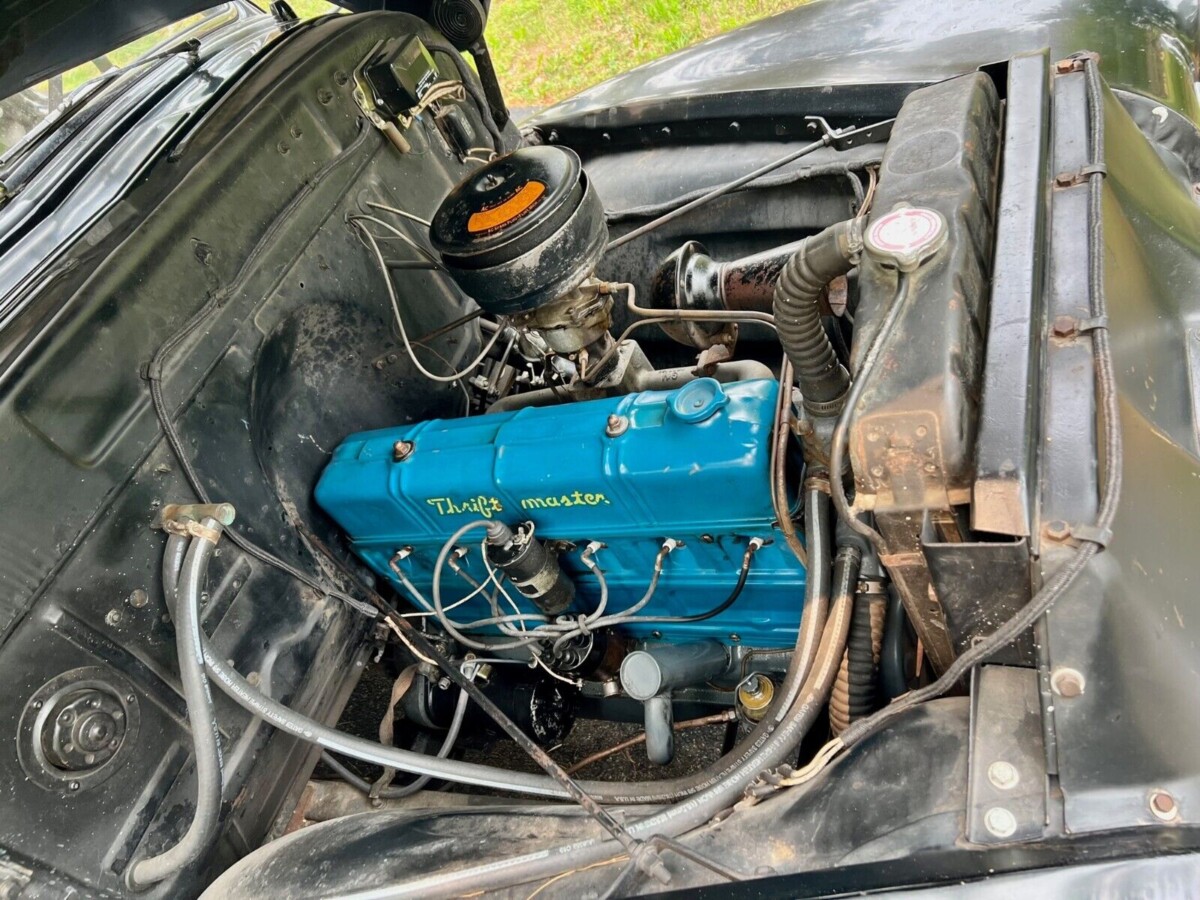 The engine is the Thriftmaster stovebolt 216 cu. in. in-line six-cylinder with a single Rochester carburetor, making about 92 hp. Photos in the listing include a receipt showing substantial work dating from a year ago: the cylinder head, carb, generator, and fuel pump were rebuilt and the exhaust system is new. One item noted in the receipt is “got running” – so I think we can assume the engine will start. The transmission is a column-shift, three-speed manual. Driving these older trucks is an art nearly extinct in today’s driving population, but patience pays!
