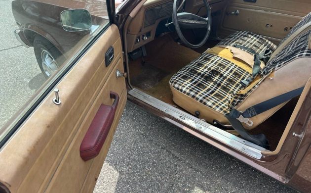 The plaid upholstery will have to be redone, and we wonder about the tires (loads of tread left, but the pattern appears to be an older design). The only other possible downside is the lack of a title (aka “missing”). Does that mean it was misplaced or simply one was never issued, as this is a 1970s New England car? Kudos to Tony Primo for a tip that may be more than a granny mobile one day.