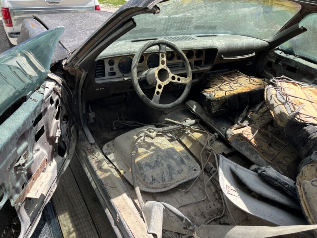 The seller’s Trans Am is the SE edition of which just 3,760 were made with a Hurst shifter and T-Tops, according to the seller. This is said to be a PHS-documented auto that doesn’t look too bad from a distance. But once we get closer, you begin to see the issues with the body, specifically corrosion. And once you open the doors and look inside, the situation gets more depressing. It’s a mess and there are some pretty substantial holes in the floors, said to have been caused by leaking roof panels.