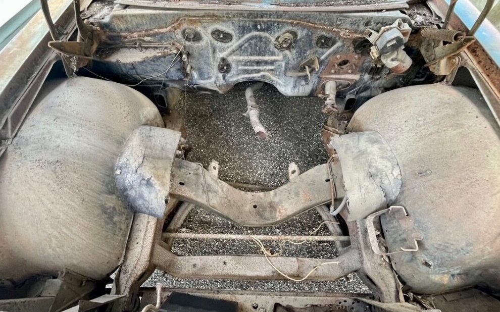 Back to this “true” barn find, this example was supposedly lined up for a restoration project that never occurred. In spite of the barn attack, the seller suggests, “This is a good parts car or if you’re handy then restore it to your specs. A lot of good and hard to find parts left on this car. The frame is nice and solid floor are ok“. Parts? Maybe, most of the sheet metal is dented; perhaps there’s still some useable trim available, or a decent frame to replace another that has given it up.