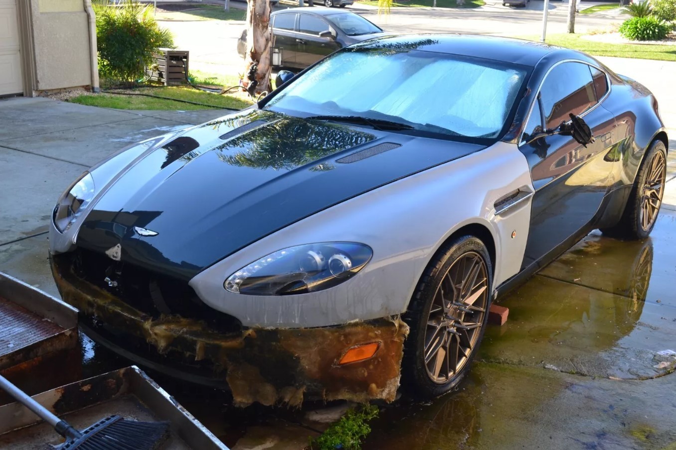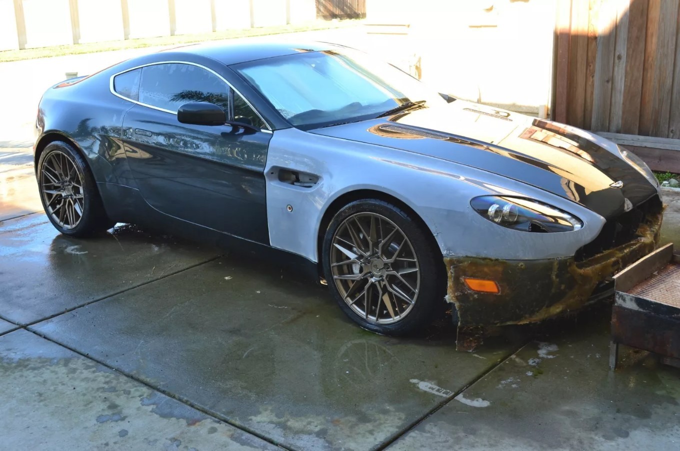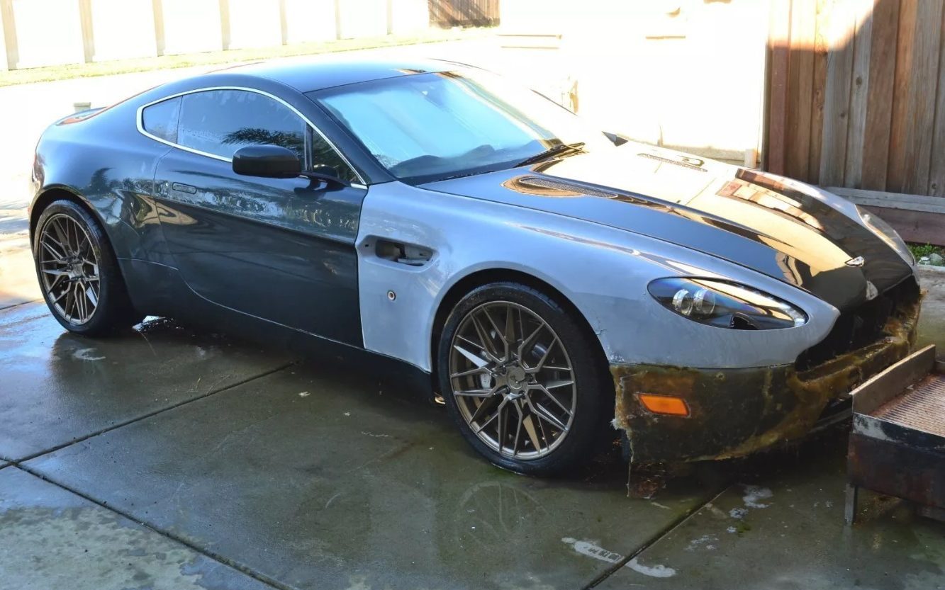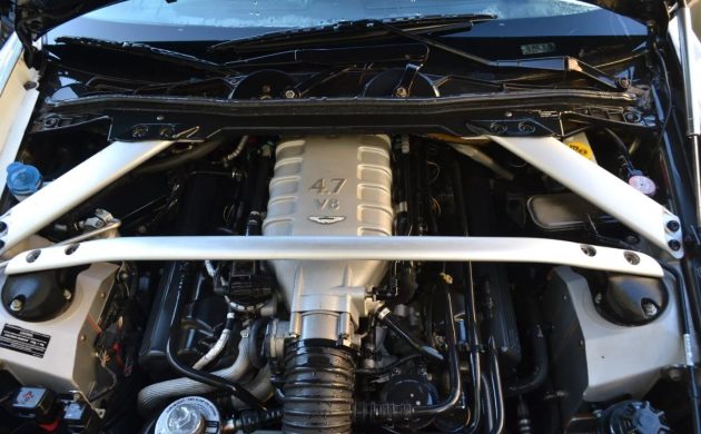 Aston Martin unveiled the Vantage as a concept in 2003, with the production version hitting showrooms for the 2006 model year. The lead-up to its release was interesting, with the company riding the crest of a wave following the unprecedented success of the DB9. It released plenty of “teaser” photos of the car in action, letting a limited selection of motoring journalists test drive the latest offering, but placing an extended embargo that prevented them from writing about or providing specific information about the Vantage. Our feature car was produced as Aston performed a model update, increasing the size of the engine and performing other minor changes. The seller describes its paint shade as “Green,” but I have struggled to pin down the color from the company’s 2009 palette. They drove the car regularly for six months before hitting a patch of loose gravel that launched the Vantage into the scenery. Exterior damage was largely cosmetic, with the body structure and radiator support unaffected. The seller replaced the damaged windshield, bolted on a set of genuine front fenders, and splashed $5,000 on new wheels and tires. It still requires a bumper, because it appears that someone has attempted a second-rate repair with fiberglass. A grille is also required, as are minor panel repairs to the hood and roof.