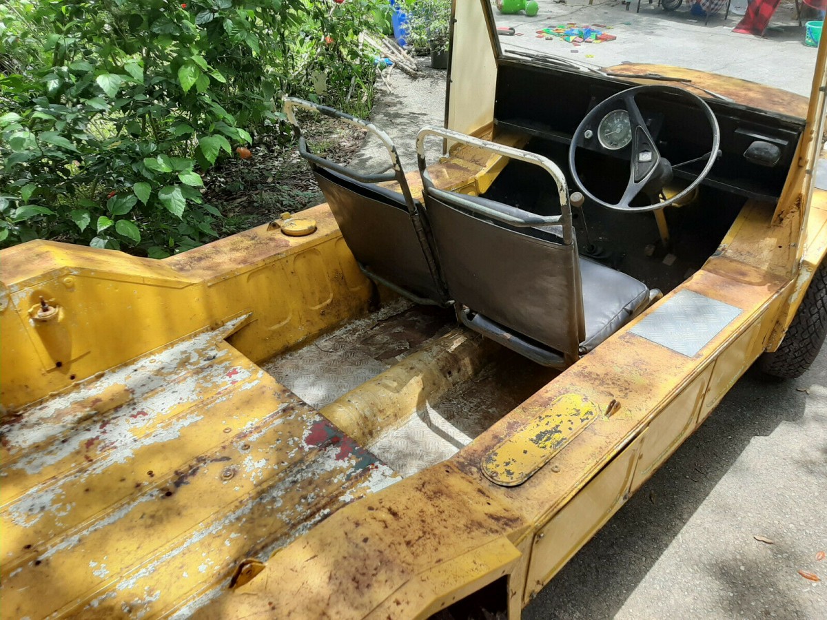 I used to drive a ’79 [Portuguese made] Moke during the time I worked in Barbados. I had found another for spare parts, and seriously considered cutting the back section off my car, and cut the damaged front section of the parts car, then weld the 2 together to give me a 4 passenger long wheelbase, with a cargo area behind the back seat. Never had the time to create the LWB Moke.
