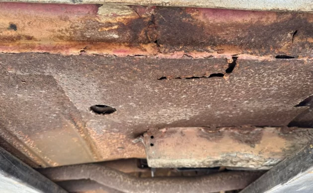 “Front frame rails are average,rear frame rails are pretty good. Battery tray needs replacing, The floor panels have been patched before poorly so will need redoing. The roof has a dent in it.The car is complete and does run but has been off the road ….”