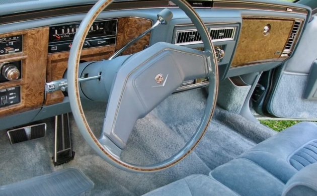 Delivered in triple blue, with the popular “Cabriolet” vinyl roof (Elk Grain Light Blue) and wire wheel covers, this Cadillac shows nearly as new. Even the underside is almost showroom clean. Prices of these luxo-barges have drifted up over the last few years, though Cadillac’s predilection for producing niche trim levels and body styles like the d’Elegance and the Phaeton can confuse price discovery. These rarities can sell for quite a bit more than the run-of-the-mill deVille. Still, interpolating recent sales tells me that even the buy-it-now here is reasonable. What would you pay for this nearly perfect Cadillac?