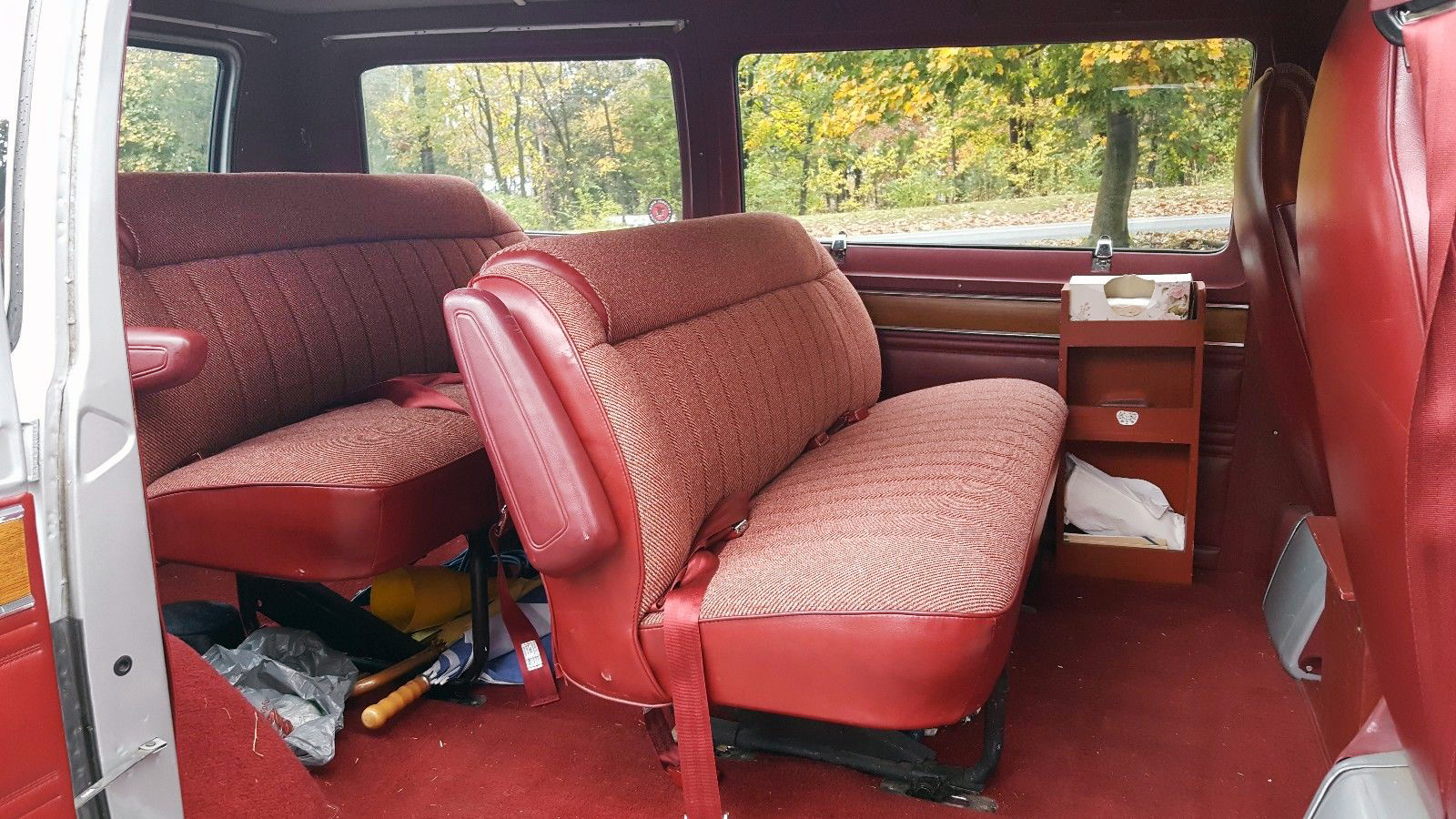 Silver over red, scary. If I make it through this without buying this van it’ll be a miracle. The seller of this nice looking rig is the son of the original owner. This beauty has been stored, or garaged, since new and after 106,000 miles it has “no exterior rust”. I’m not quite sure if that means that it has interior rust or what that means, but it sure looks perfect. The only problem is that the gas gauge isn’t currently working, but the heater, cruise, and even the AC is working! There are no dings or dents and it has never been in an accident. Whew, this is getting tougher. I do NOT need this van, I do NOT need this van, I do NOT need this van.. Since I travel 150-200 day a year, though, I could save a lot of money sleeping in this van compared to hotel costs. Hmm.. I DO need this van, I DO need this van..