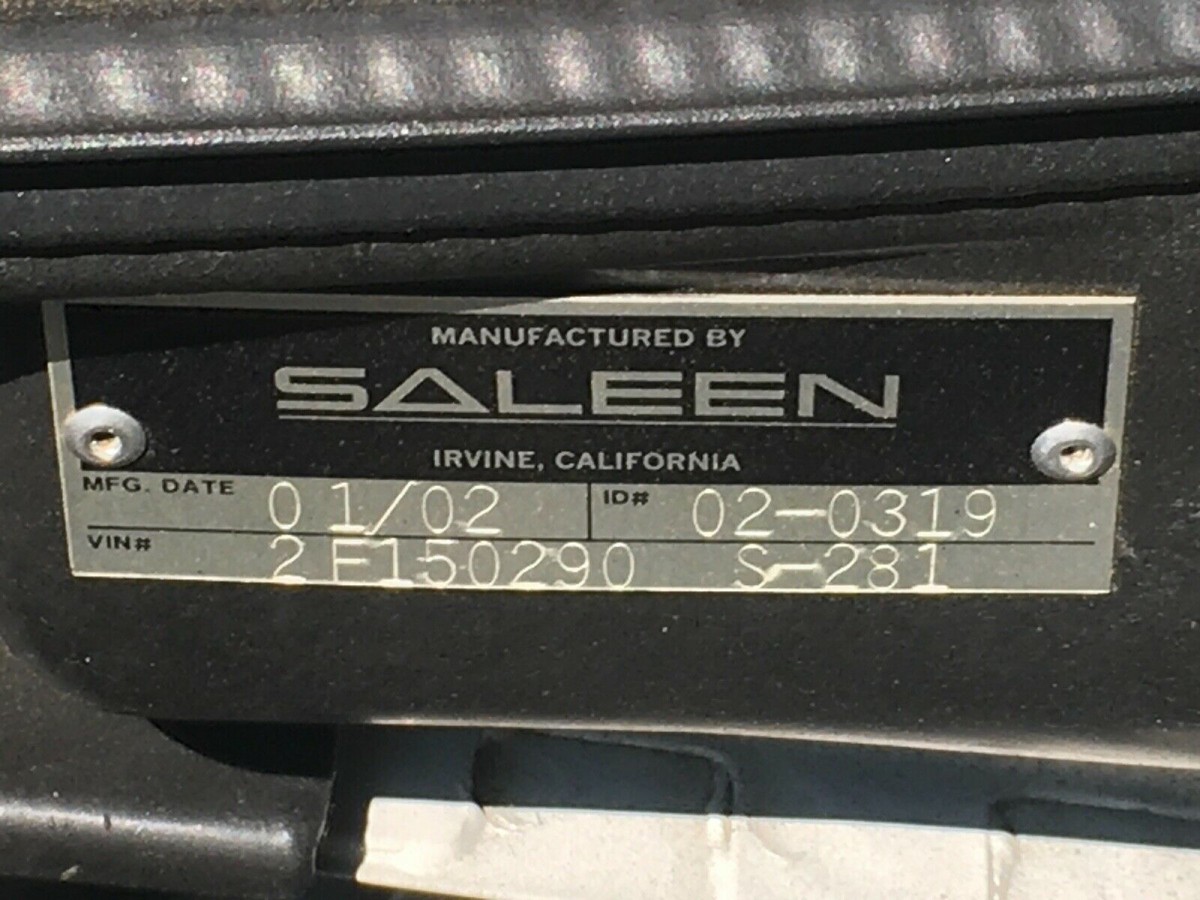 Saleen was considered the manufacturer of these highly modified Mustangs rather than Ford, and the VIN plate shows that.