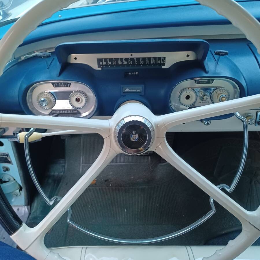 No pics of the engine bay so i’m not sure the car has power steering and power brakes. The steering wheel is simpler (no chrome) and without the central “power steering” medallion so it must be a manual steering.(i’ve a ’57 Mercury Voyager with Pw. steering … )