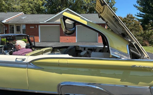 I’ve joked in the past about how some sellers are extremely skimpy in word count when it comes to advertising their classic car or truck. Even basic information (and photos such as the engine bay) are omitted for some unexplained reason. Well, this one wins the Skimpy Words Award hands down. All that is mentioned in the craiglist ad is: “1959 ford galaxie skyliner.” That’s all, folks. Fortunately there are enough photos (but photos of the engine bay aren’t included) to show that this is one nice looking, well-optioned 1959 Ford Skyliner. I’d like to thank Mitchel G. for sending this remarkable retractable our way!