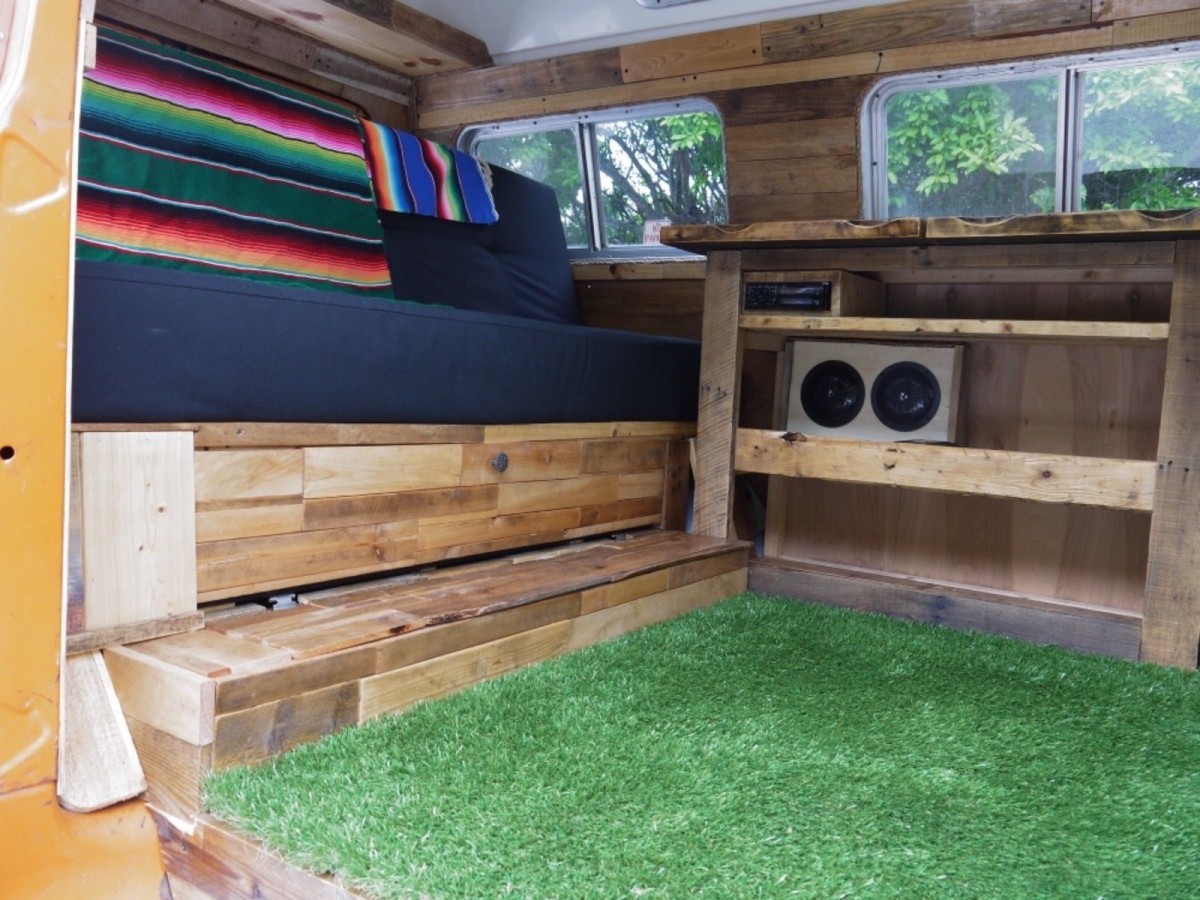 The swivel bucket seats were added at the time it was converted and are among my favorite features, next to the grass carpeting. While these van conversions are always a matter of personal taste, I feel as if the seller walked a nice line of making it hip with lots of eye-ball appeal without over-personalizing it to the point no one else wants to own it. As the seller notes, “Everything in the van has been handcrafted with reclaimed products giving it that rustic feel throughout.”