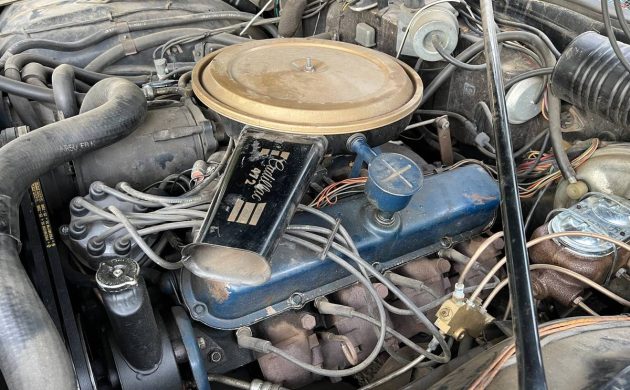 The oyster-hued fabric upholstery, at least up front, still shows surprisingly well for a 97 K-mile car that has survived 58 long years. The backseat, however, is another matter; it looks like Jack the Ripper caught more than a ride or two back there. The steering wheel is typically missing a chunk, but beyond that, no other biggie. Well, one other thing, the A/C is inoperative, and the heater is an on-and-off proposition.
