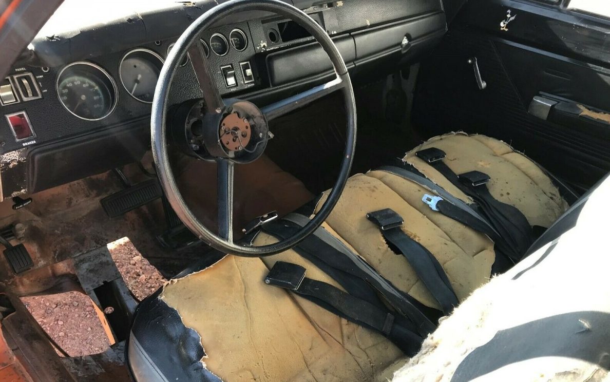This Road Runner is a bit unique as in the Coyote is probably going to finally catch his quarry; no more worry about the Acme branded anvil. Why? There is no motivation under the hood of this bird, only the sounds of silence. Usually, a 383 CI “B” block engine provides the oomph. Referred to as a Magnum, it was good for 335 HP. Beyond that one could find a 440 CI “RB” engine with a six-pack carburetor set-up cranking out 390 HP and finally, the Big Kahuna, the 426 CI, 425 HP HEMI. So, in the usual glass half full/half empty argument, maybe it’s not what this Road Runner is missing but what it could be? The seller indicates that for $400 extra he’ll throw in a 383 CI long block and A727 automatic transmission if you want to go the originality route. Wonder if he still has the driveshaft?