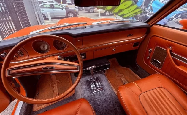 Yup, the feds really handed it to us. Between bumpers and emissions we watched our cars lose their appeal almost overnight. But just look at this! It got a V8 with air and that oh so sweet orange interior…swoon! You just know you have the only one. Now one wonders why Ford never offered a 4-speed in these.