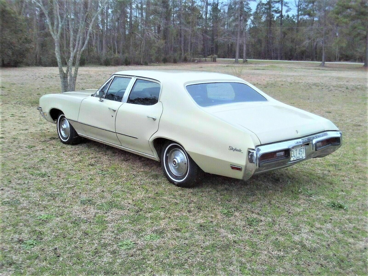 This brings back memories. I had a ’72 Buick Skylark 4 door hard top as my college driver in the early 90’s. It was a $250 purchase from a guy I went to high school with- originally his grandmother’s car. I threw some junkyard Buick mangum 500 style rims and drove it for 2 years until it was too rusty/ breaking apart to keep going. ended up selling it for $200 to a guy who parted it out. The hubcaps to this car are still hanging in my parent’s barn in upstate NY. To this day this was one of the best value cars I’ve ever had.