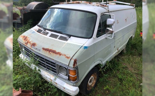 Let’s get inside this van, which sadly only includes photos of the front seating area; there are no photos of the rear cargo space at all. That’s pretty disappointing, not even a photo through one of the side windows. I drove Dodge vans for years after high school, and then through a seven-year stint of owning a commercial cleaning company. My first one was a former Sears delivery van in another unique green color. We had 14 employees and four Dodge vans, and they were great. This one appears nicer in the cab area than I thought it would inside, and to top off the cool factor, this one has a four-speed manual (three-speed overdrive) on the floor. My green Dodge van had a column shifter manual that we converted to a floor shifter, but a factory version would have been much better.