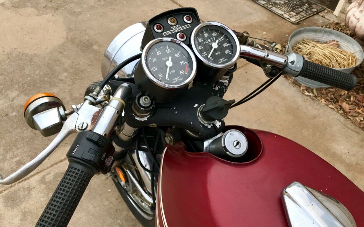 Nice, mostly correct example, but his Buy-It-Now is a little high considering the rusted (non-original) mufflers, no taillight, later Koni shocks and the generally fair condition. Market value is closer to $10k in my opinion. I work on all of the “weird” stuff (Guzzi, Benelli, Morini, Cagiva, etc.) for a living and am almost finished a ’73 V7 Sport restoration.