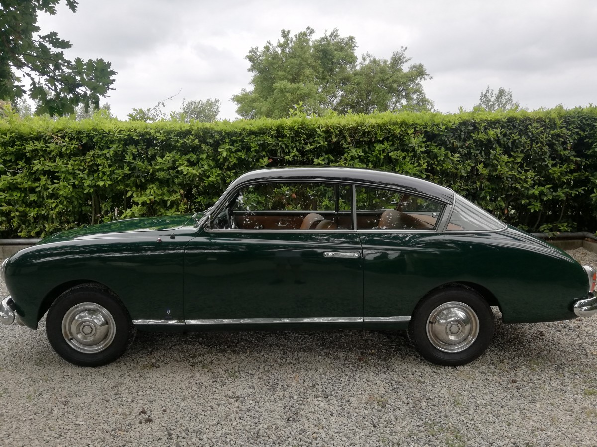 Unfortuntely, prize-winner that it was in the 50’s, it is not very attractive to today’s eyes – the front looks overly-large and cluttered, and the roof line is bulbous. (Compare the roof line with a Lancia Aurelia…) I would suggest that an Arnolt is a far more reasonable entrance into 50’s custom Italian bodyworks, at 15% the cost.