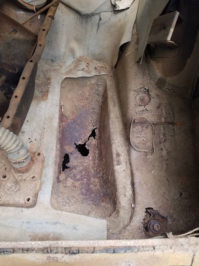 We don’t get any shots of the underside of the car, but this shot of the trunk shows some rot-through. I don’t see anything there that looks particularly horrendous. There is some rot that you can see here, but once again the worst of it seems to have afflicted the passenger side of the Plymouth. Working as best as we can with the supplied photos, the remainder of the trunk floor appears to be quite solid. We don’t get any shots of the engine and the seller indicates that it doesn’t run. I would like to know whether it turns freely.