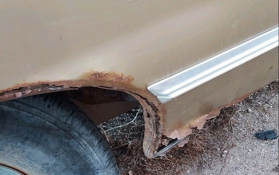 Now, this vintage of Chevrolet’s B-body can be a rust magnet and this Impala has not gone unscathed. This one has rust in all the usual places such as the fender legs and lower quarters. What’s here is not terrible but it’s going to need work. The lower quarters are available and the fenders are not so gone that they can’t be patched. The seller claims that the floors are solid.