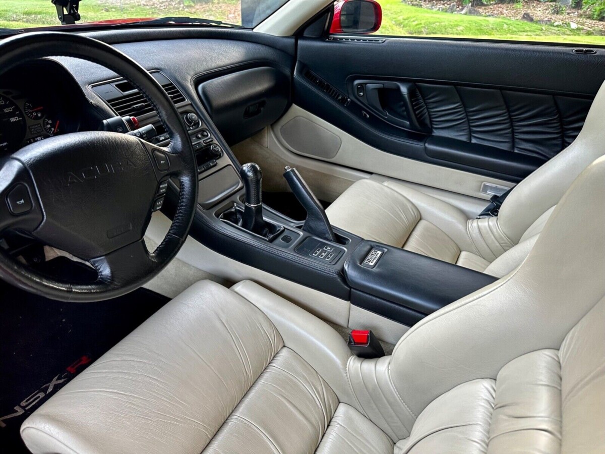 Now, the good thing about a car owned by a celebrity or high-profile executive (or anyone of that persuasion) is that they’re typically bought as investments or otherwise static display pieces. So, by the time the third owner comes along, there’s still a near-mint car sitting in the garage. This NSX is clearly in that sort of condition, with a beige and black interior still presenting like new. My one gripe: the NSX-R floormats. This is not an R-spec example, and I find it hard to believe the original floor mats went missing. Interestingly, they were still in the photo the last time this NSX came up for grabs, along with some grubby bolster wear on the seats.