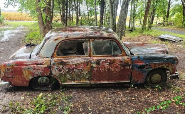 When it was pulled from wherever it was resting, the rear bumper quite literally ripped in half, done in by years of corrosion. I would also assume it has been painted multiple times and colors in its life. The rear taillights were likely not pillaged but simply smashed in. The hubcaps still appear to be present, which is rather amazing. These little W120/W121 could be optioned with either a diesel or gasoline engine, and while the former would have some usefulness for pillaging purposes, the seller lists this as a gasoline-powered model which limits it market of buyers even further. Still, I’m sure this plucky sedan would still run if you attempted to fire it up.