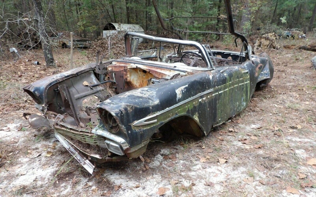 That has me thinking … if the front end and other parts from this wreck could somehow be salvaged, it could be a donor for a project involving the ’56 convertible body from Real Deal Steal.