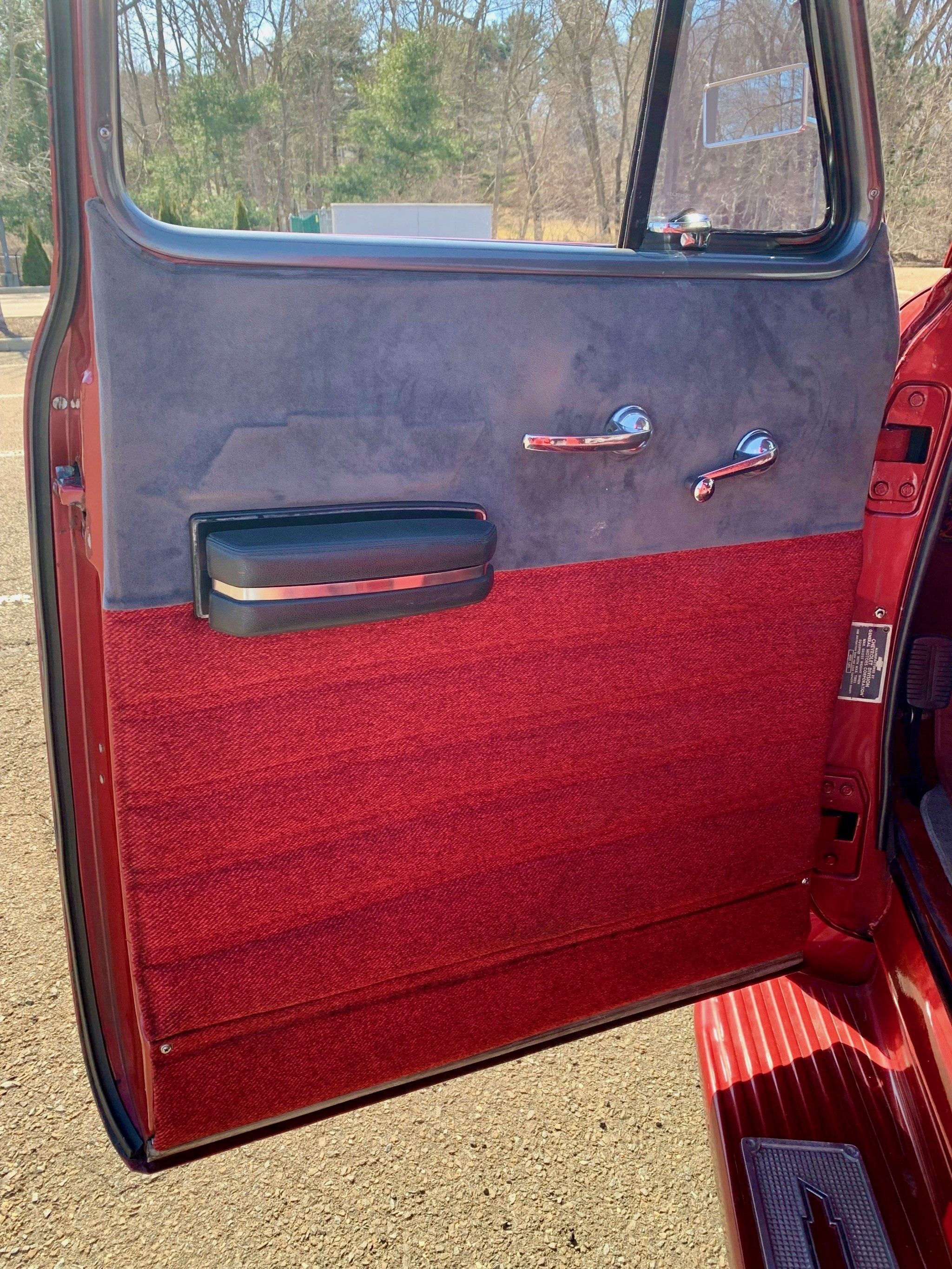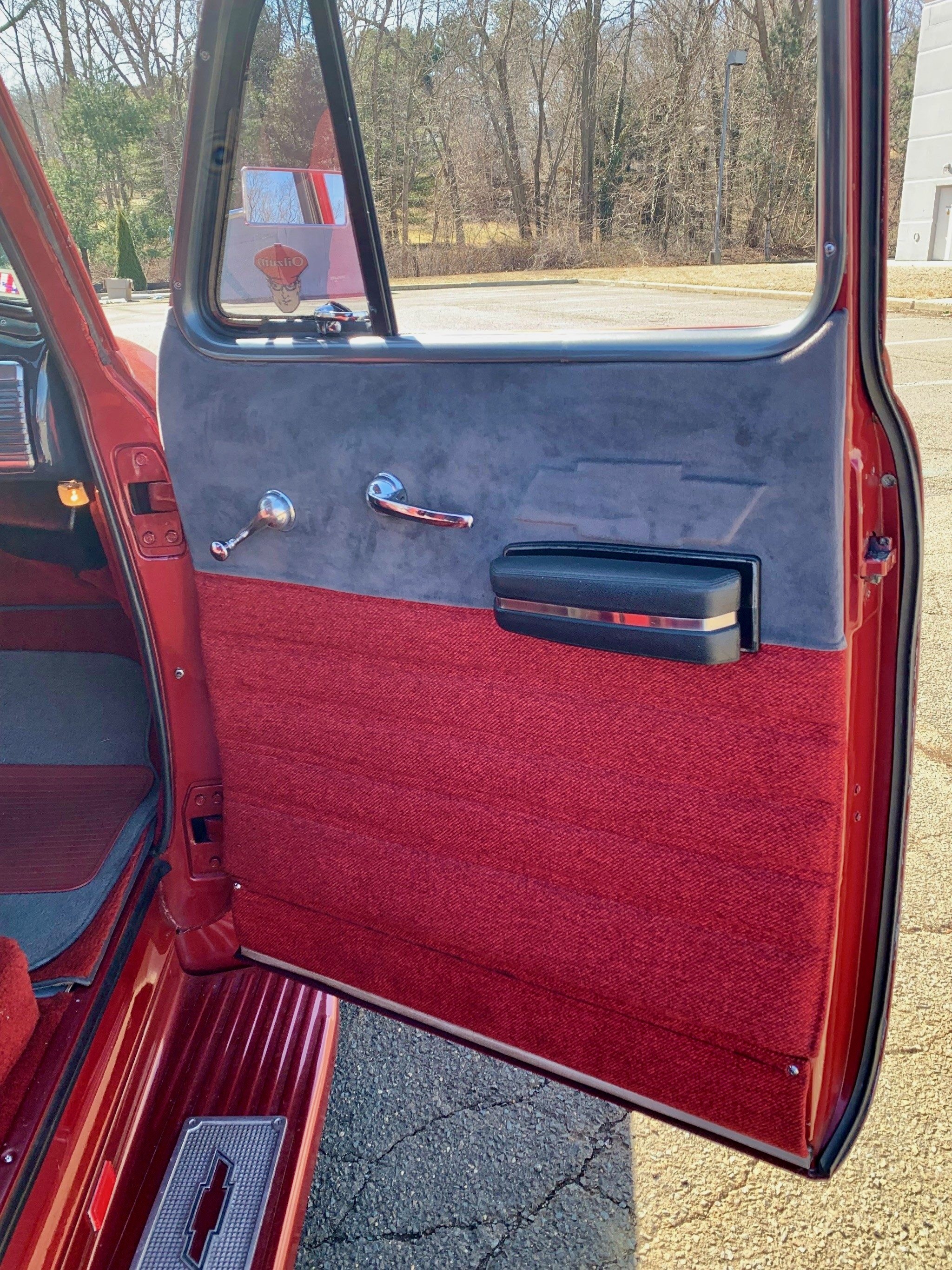 A Chevrolet 350 V8 provides power with Tuned Port Injection, aluminum heads with roller rockers, headers, and a Flowmaster exhaust system. Power is routed through a 700R-4 automatic transmission and a 10-bolt Positraction rear end with highway gears. The engine is said to run well, and the truck goes down the road nicely. The seller has a folder full of receipts detailing the work that’s been done, as well as the original owner’s manual.