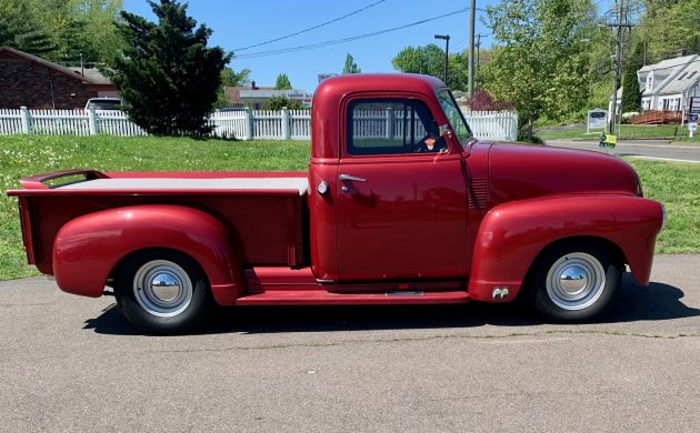As cool as classic trucks are, driving a 77-year-old truck in modern traffic isn’t always the best idea. They tend to be rather slow, and modern drivers aren’t necessarily looking for the small tail lights found on many vintage vehicles. That shouldn’t be much of a concern with this 1948 Chevrolet 3100 short bed, though, as it has a more modern drivetrain, ice cold A/C, and it even has a third brake light so distracted drivers won’t run into you! This custom truck has all the features you want in a daily driver and is ready to hit the street. It’s being offered here as a Barn Finds Auction and is located in Branford, Connecticut.