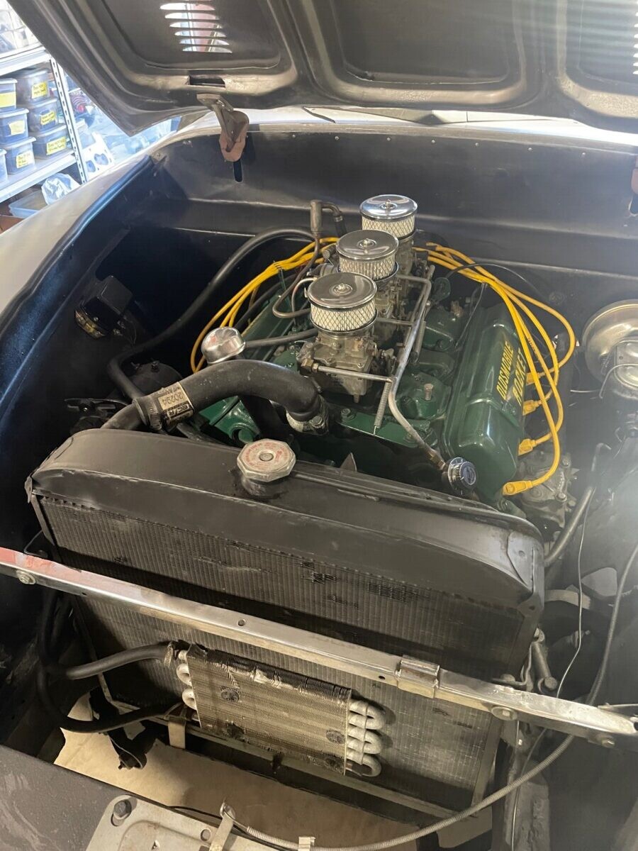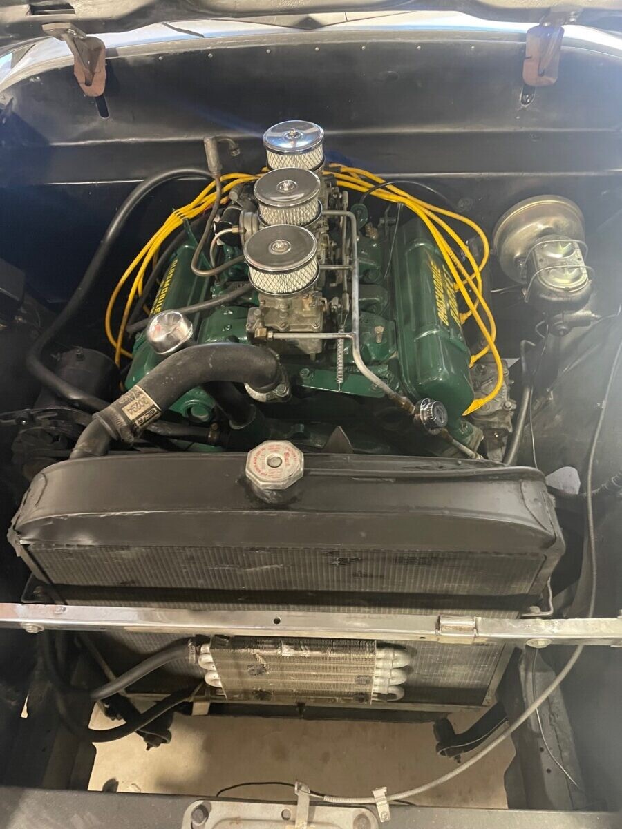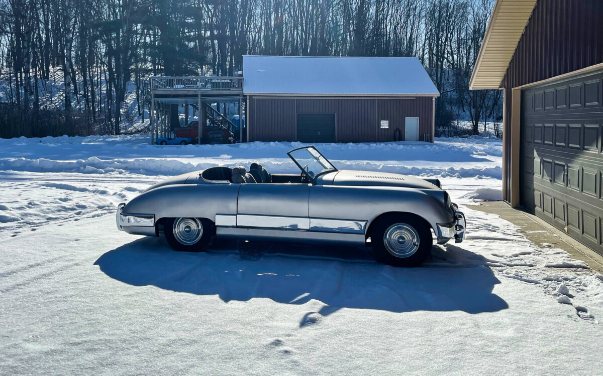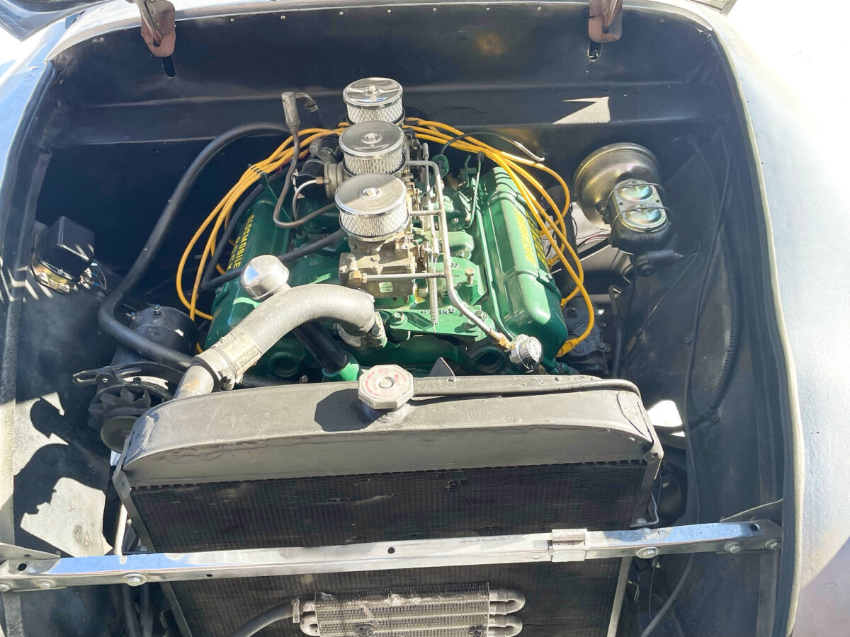 Frank wanted to have a Studebaker v8 in it, but Studebaker did not have that option yet in 1949. They were still working on it, but Frank ended up going with a Ford V8 Flathead. Although, before he got there the first 3 cars were built with Studebaker suspension and car number one had a supercharged V6 Studebaker. Later cars would have gotten an Oldsmobile rocket V8.