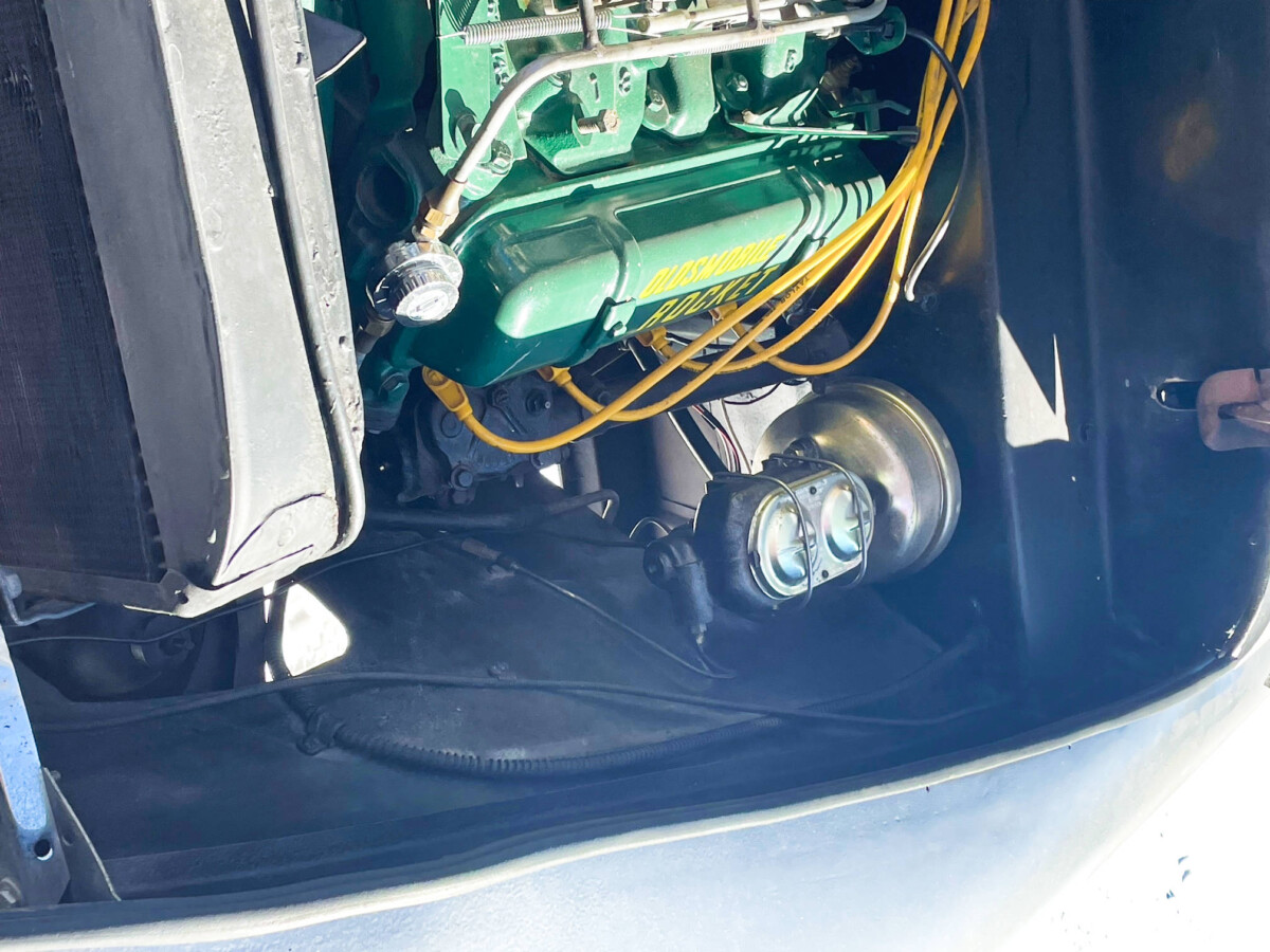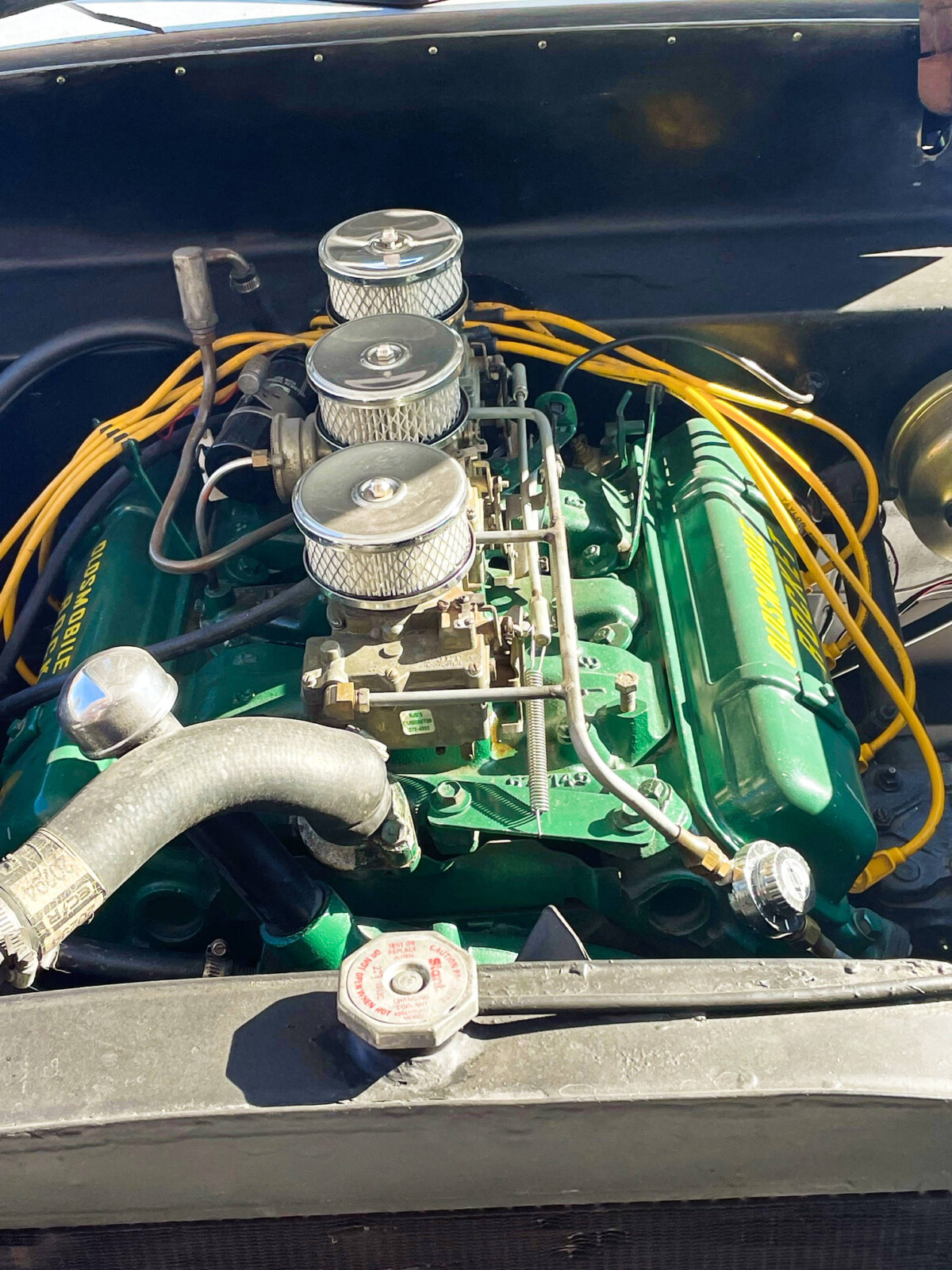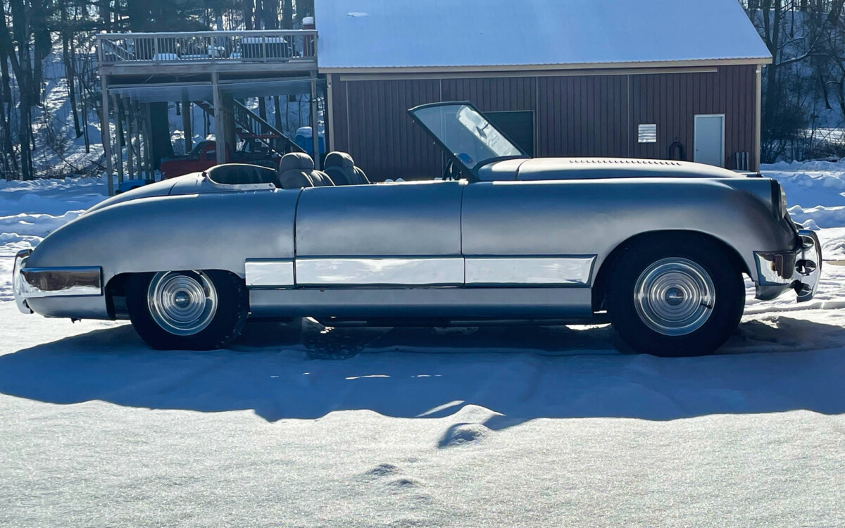 Frank wanted to have a Studebaker v8 in it, but Studebaker did not have that option yet in 1949. They were still working on it, but Frank ended up going with a Ford V8 Flathead. Although, before he got there the first 3 cars were built with Studebaker suspension and car number one had a supercharged V6 Studebaker. Later cars would have gotten an Oldsmobile rocket V8.