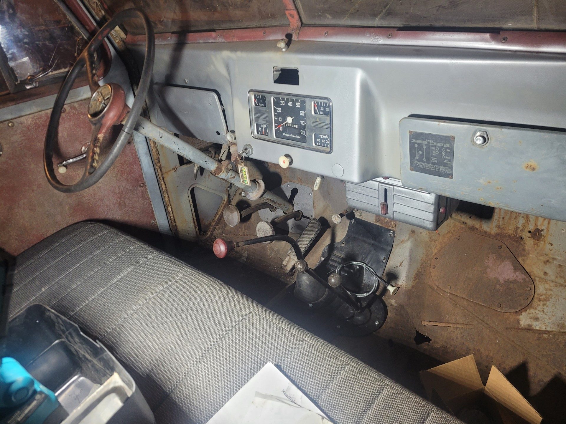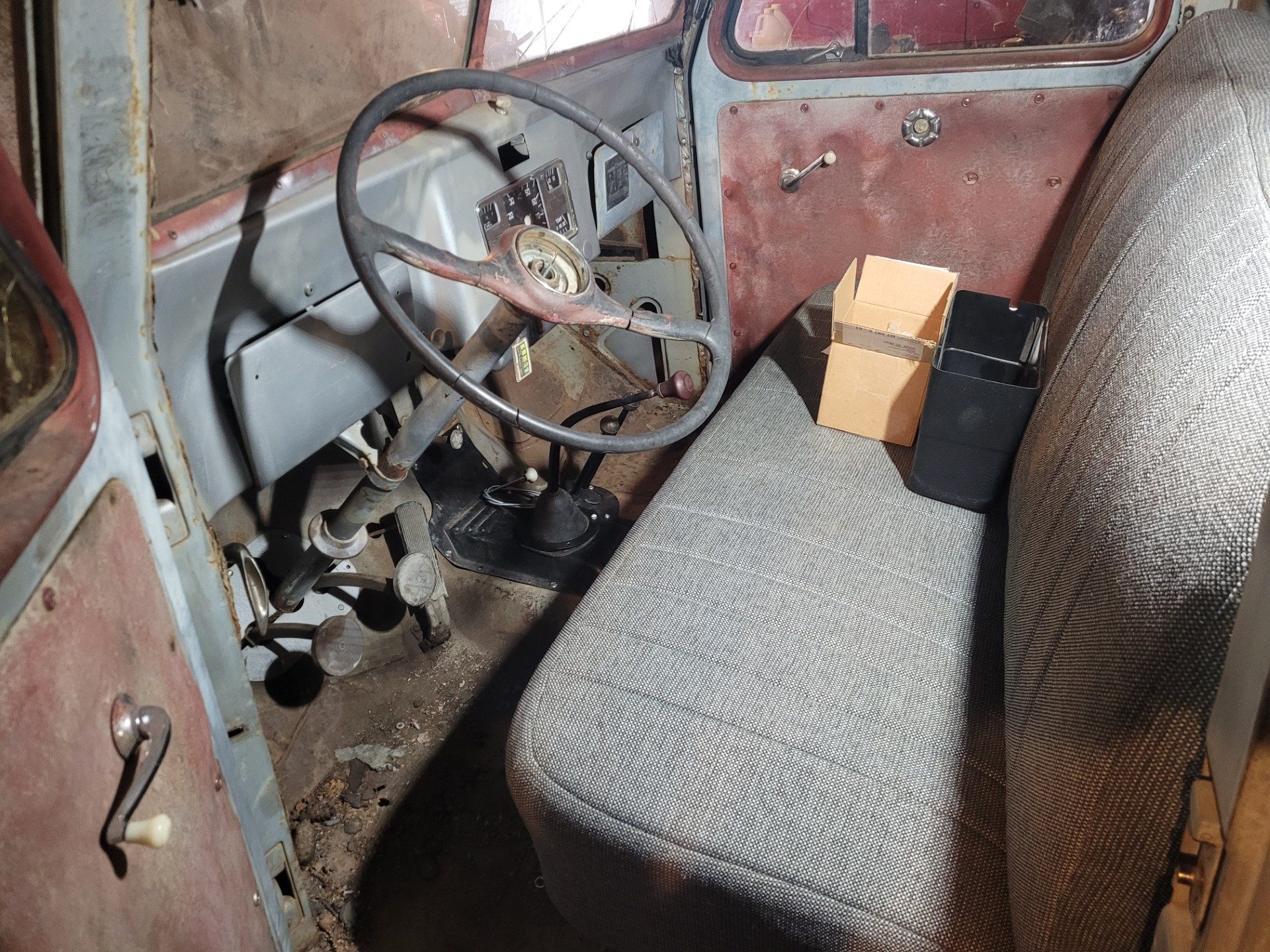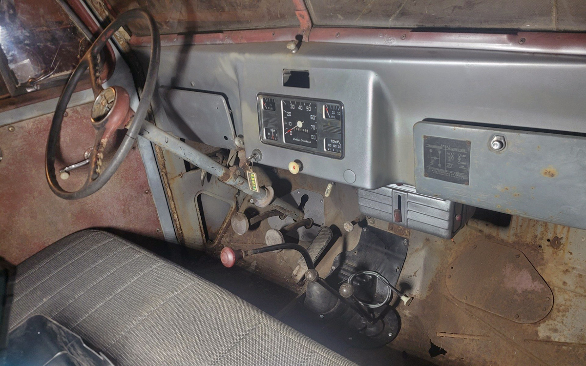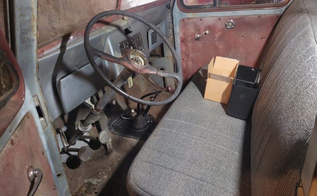 That’s one cool collection of pickups out in that Montana field, isn’t it? We don’t know the history of this truck, but as is almost always the case with rugged pickups that are over 70 years old, it has its share of dings and dents, and also rust. This isn’t 2026 sheetmetal, be prepared to do some serious pounding and welding when it comes time to straighten out that bed. I believe this truck was “Patomac Gray,” and not because of its gray primer, but because of the interior and engine compartment photos. We don’t know for sure what the color was, however.