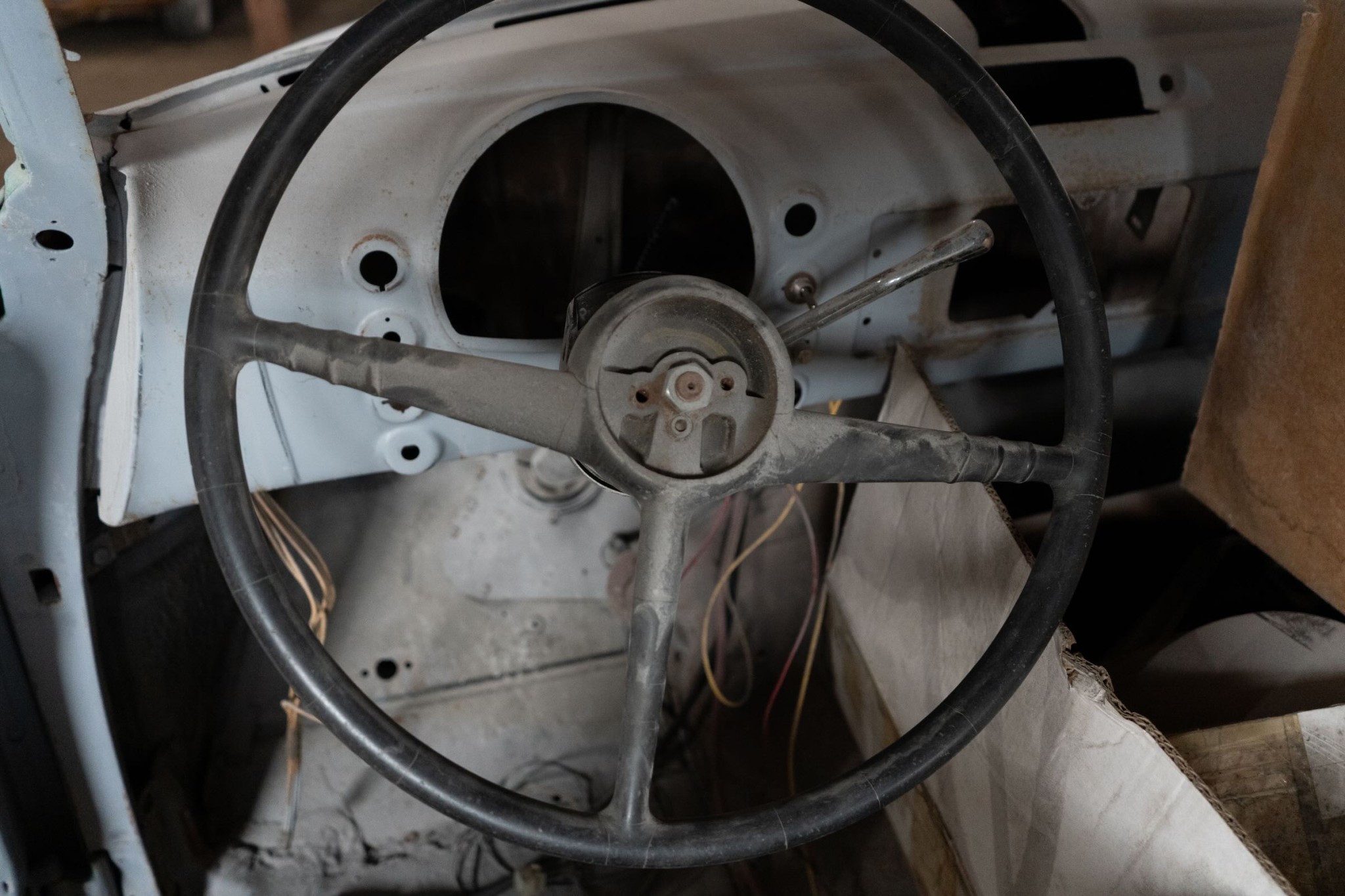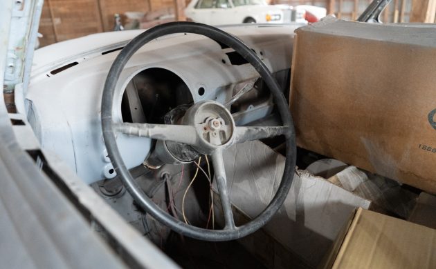 The Oldsmobile’s fastback roof has been chopped, and it looks like professionals did the work. Well, almost. The seller informs us that students from McPherson College, well-known across the country for its restoration school, did the bodywork. Unfortunately, the seller bought it unfinished from a friend who was ill, and it remains an unfinished project.