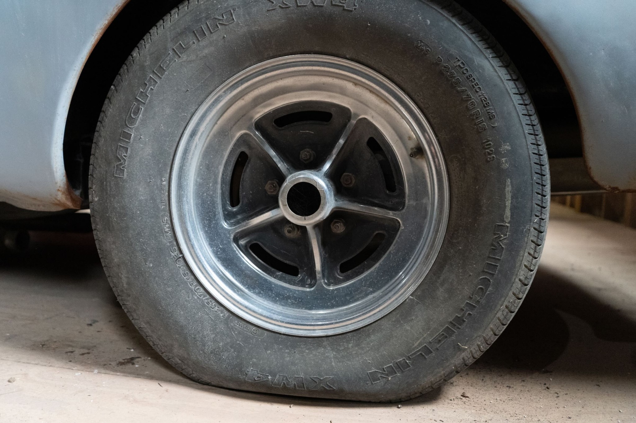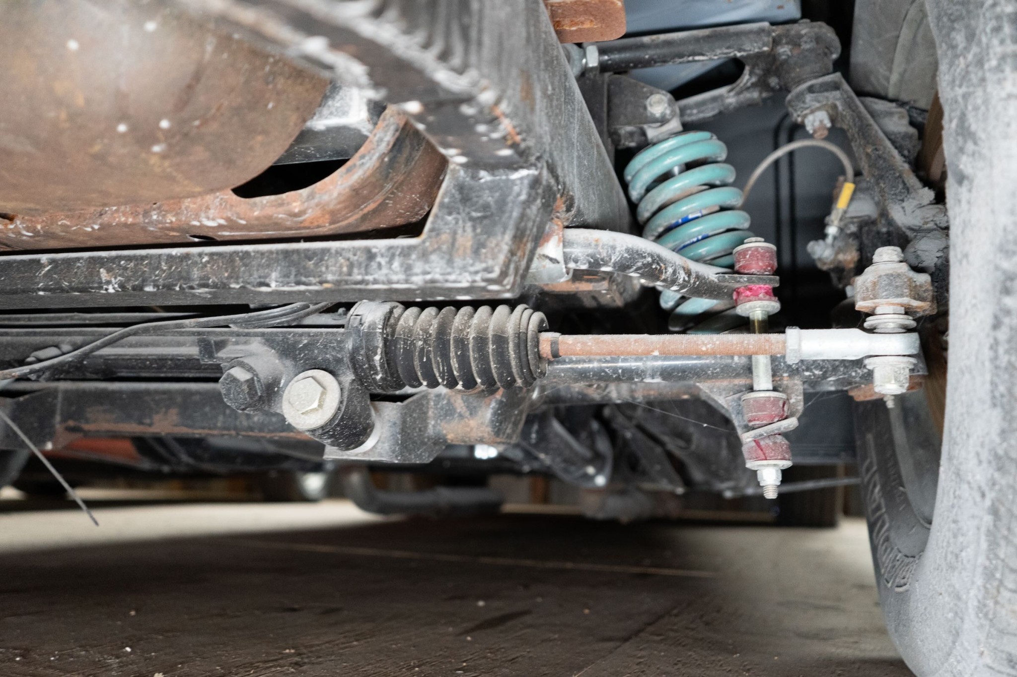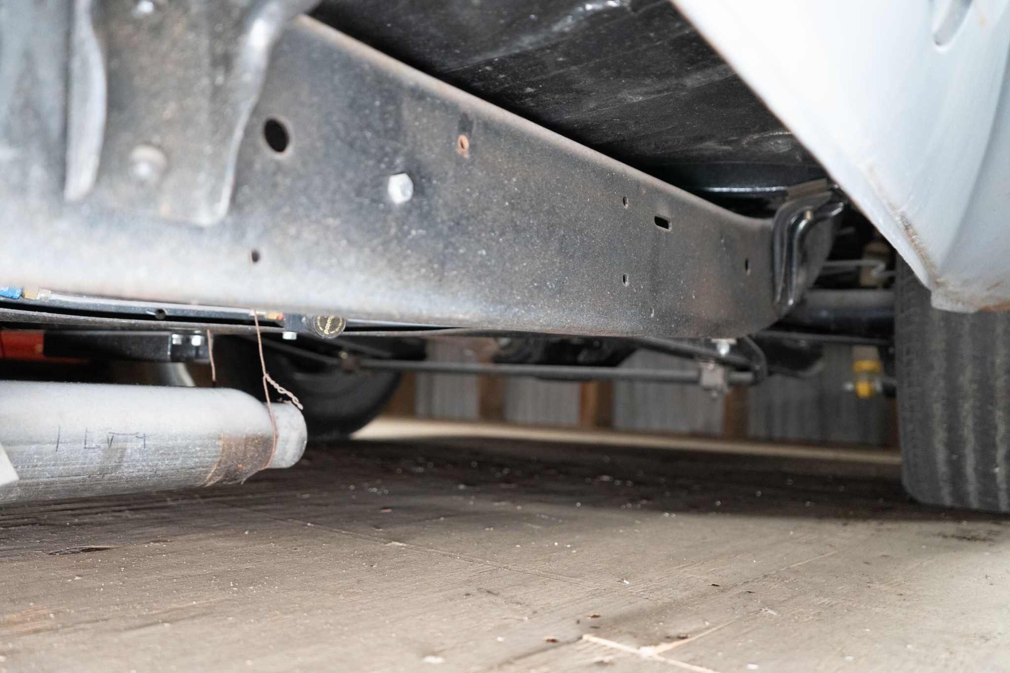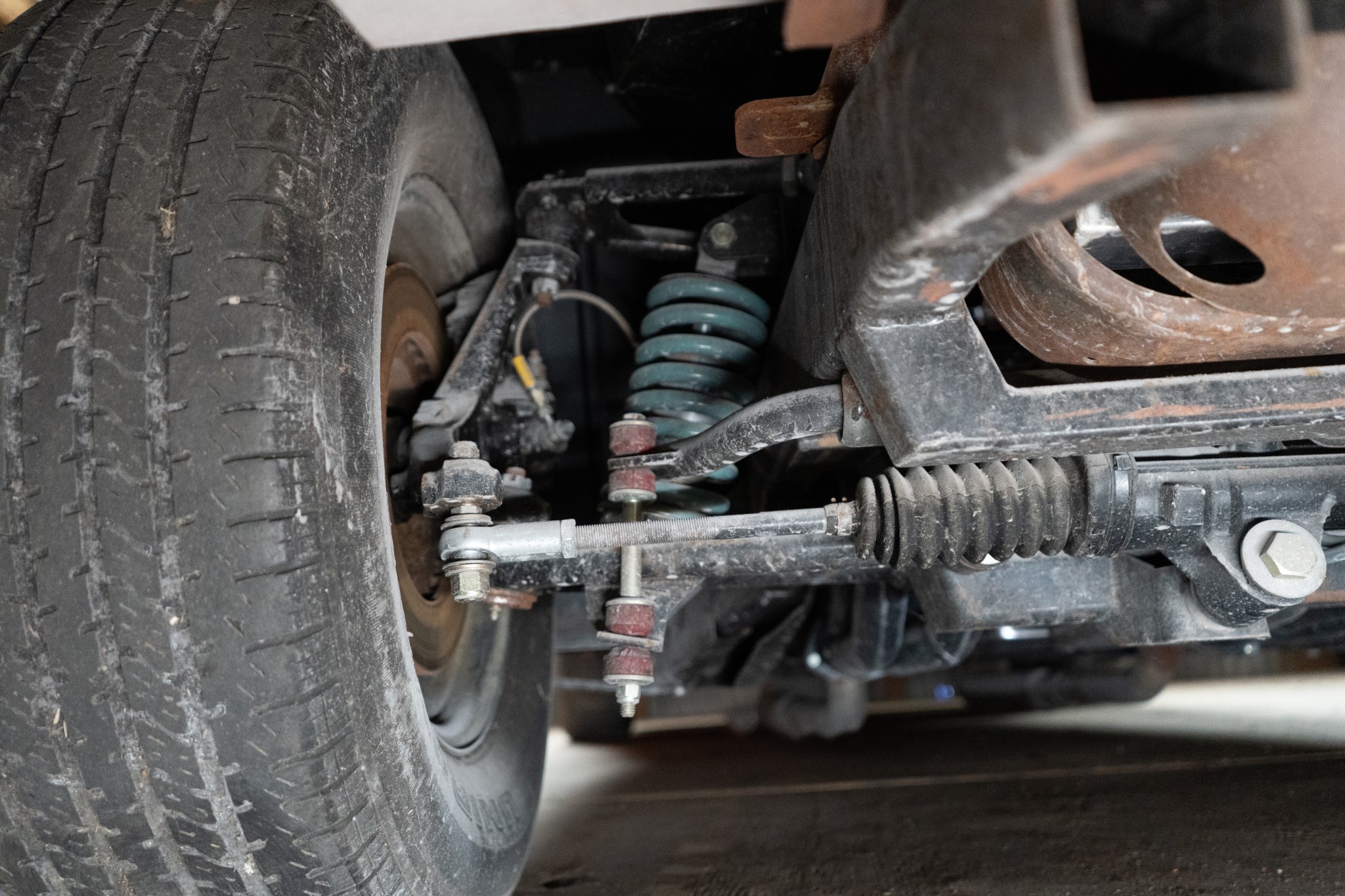 We do know that the chassis and suspension have been upgraded with rack-and-pinion steering, coil-overs, and front disc brakes. A power brake booster and appropriate master cylinder are located under the floor, roughly where you would have found the originals.