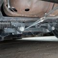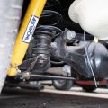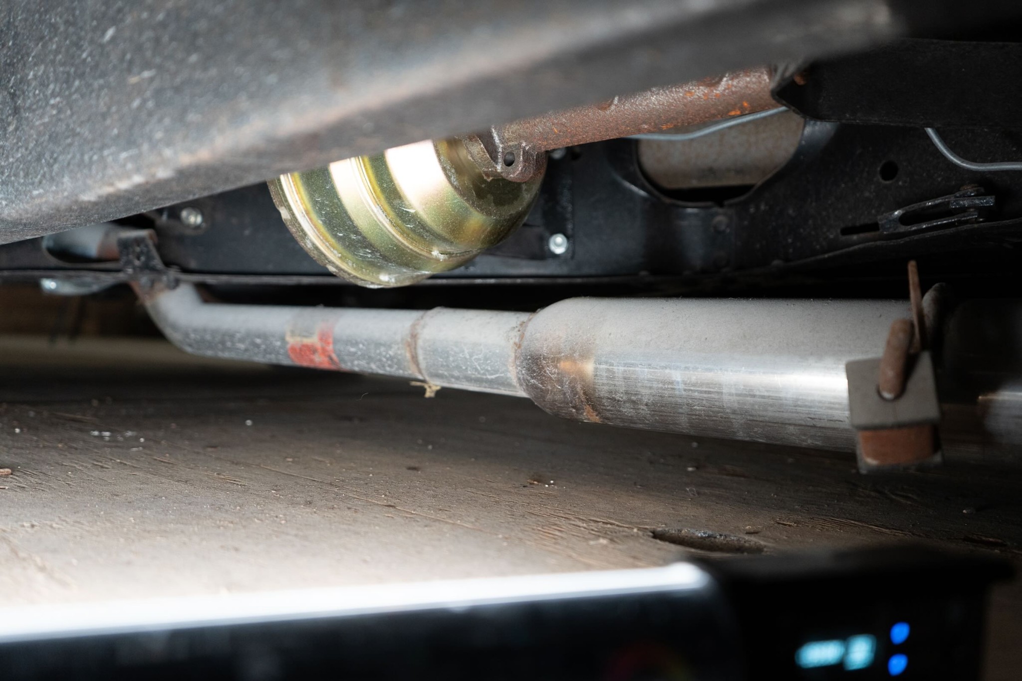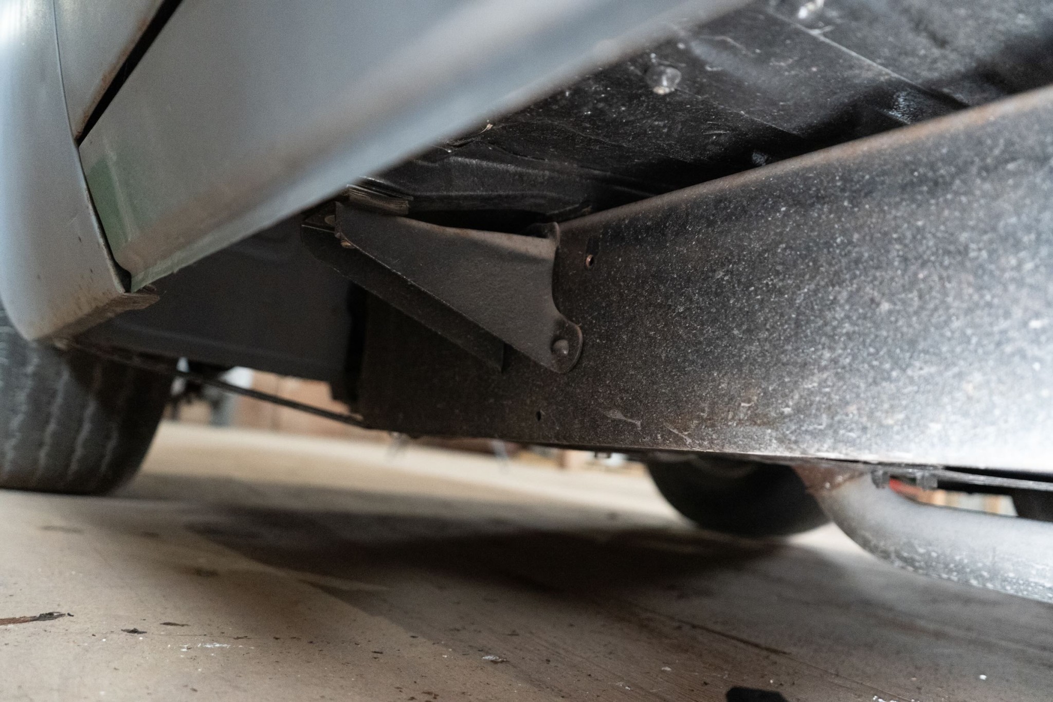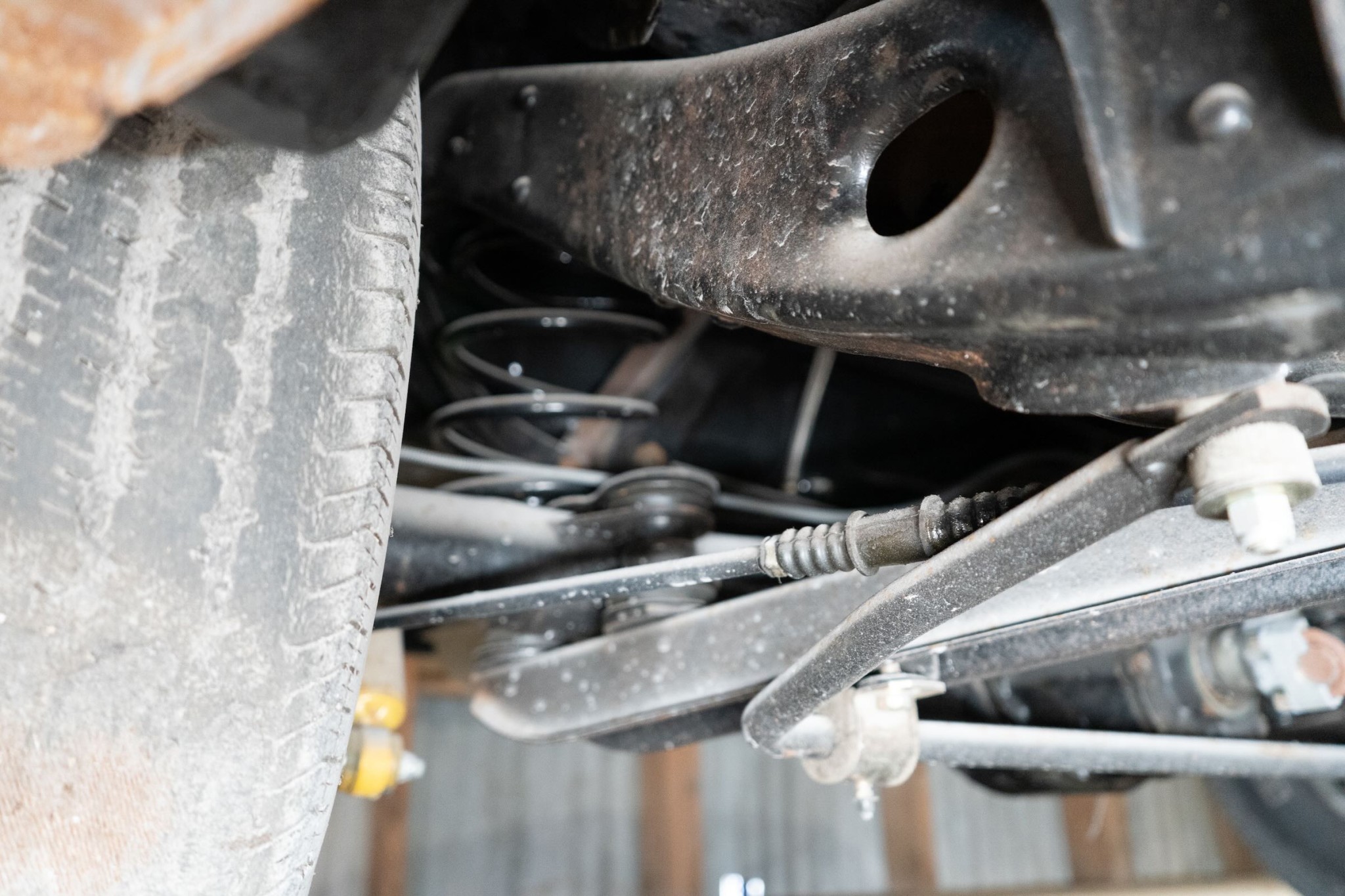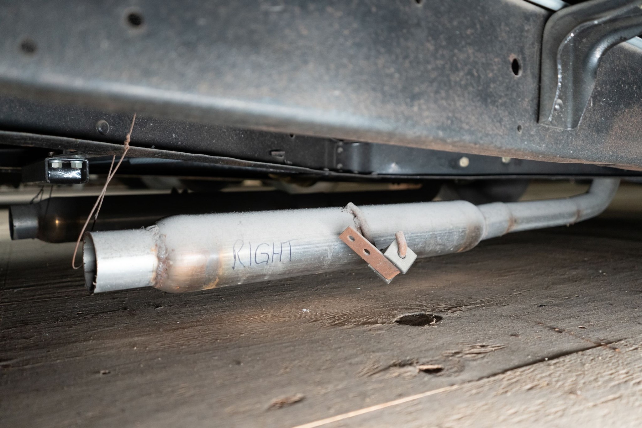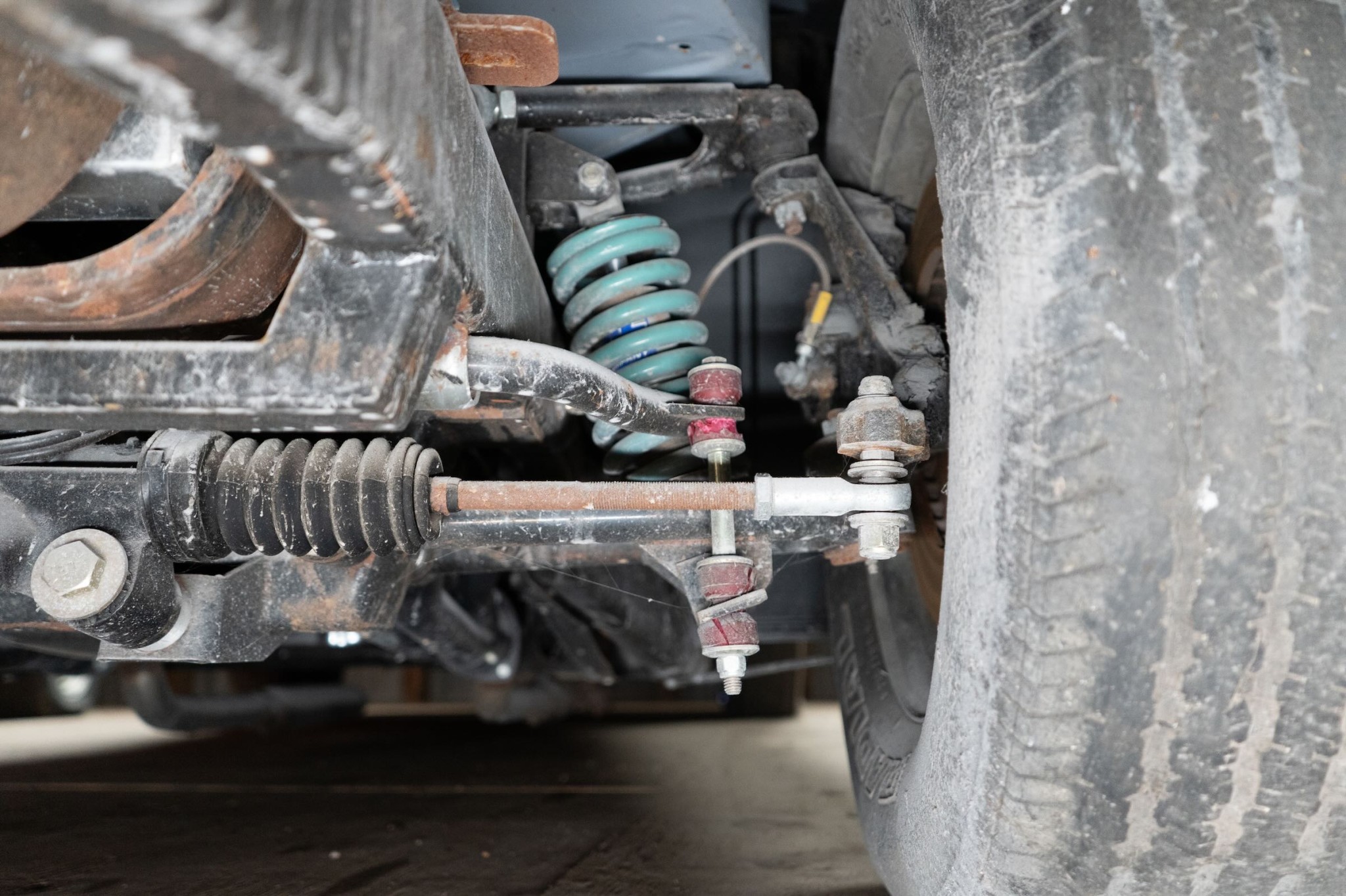 We do know that the chassis and suspension have been upgraded with rack-and-pinion steering, coil-overs, and front disc brakes. A power brake booster and appropriate master cylinder are located under the floor, roughly where you would have found the originals.