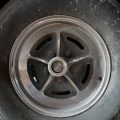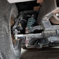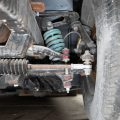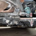 The steering lashup looks unsafe to me. There is a threaded shaft with a nyloc on top going thru the tapered hole in the spindle with a jam nut holding in place. Washers taking up some slack, then a spherical rod end AKA Heim joint with a nyloc nut on the bottom. Strenght of that shaft? Only contacting the taper at the narrowest point, and that contact is on tha threads, unless they ground that part smooth. Even if that was OK, the top and bottom nuts should be castle nuts with cotter pins.
