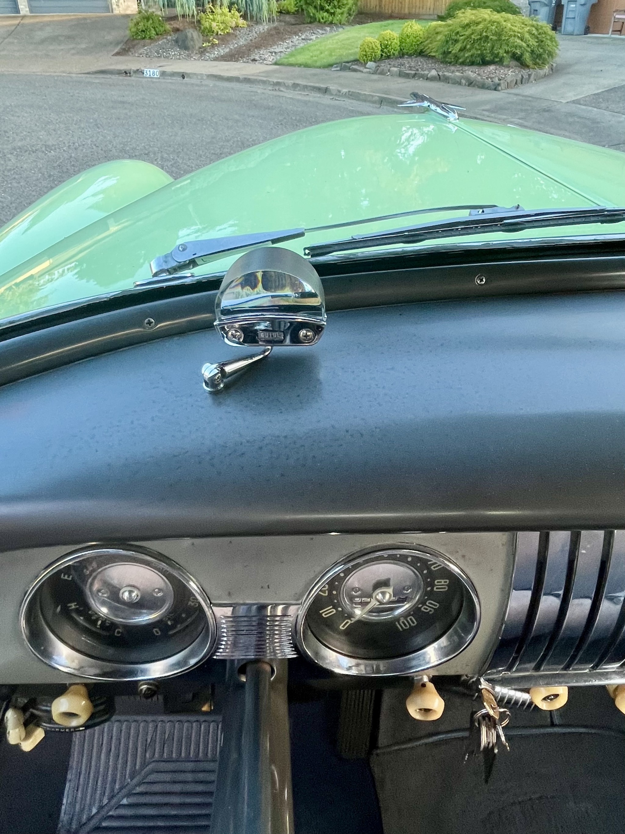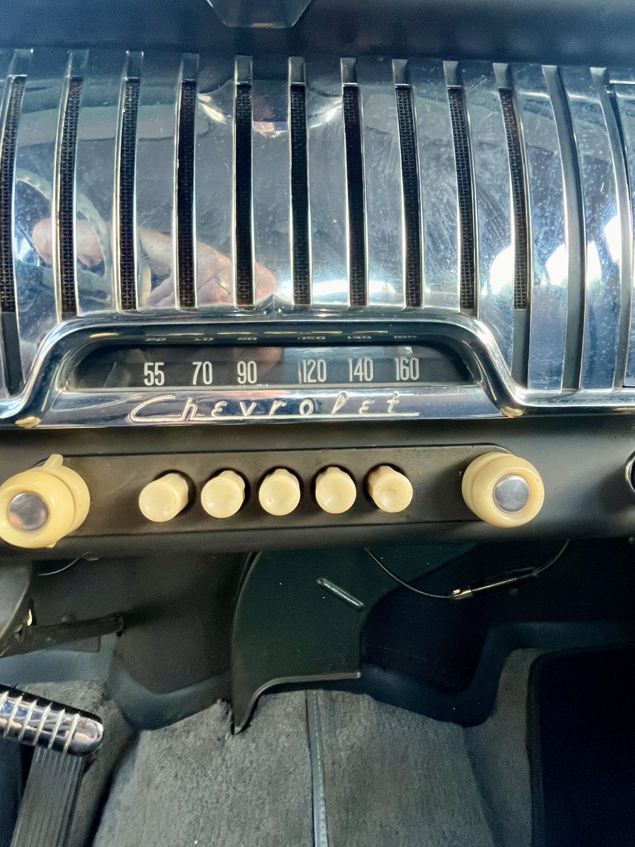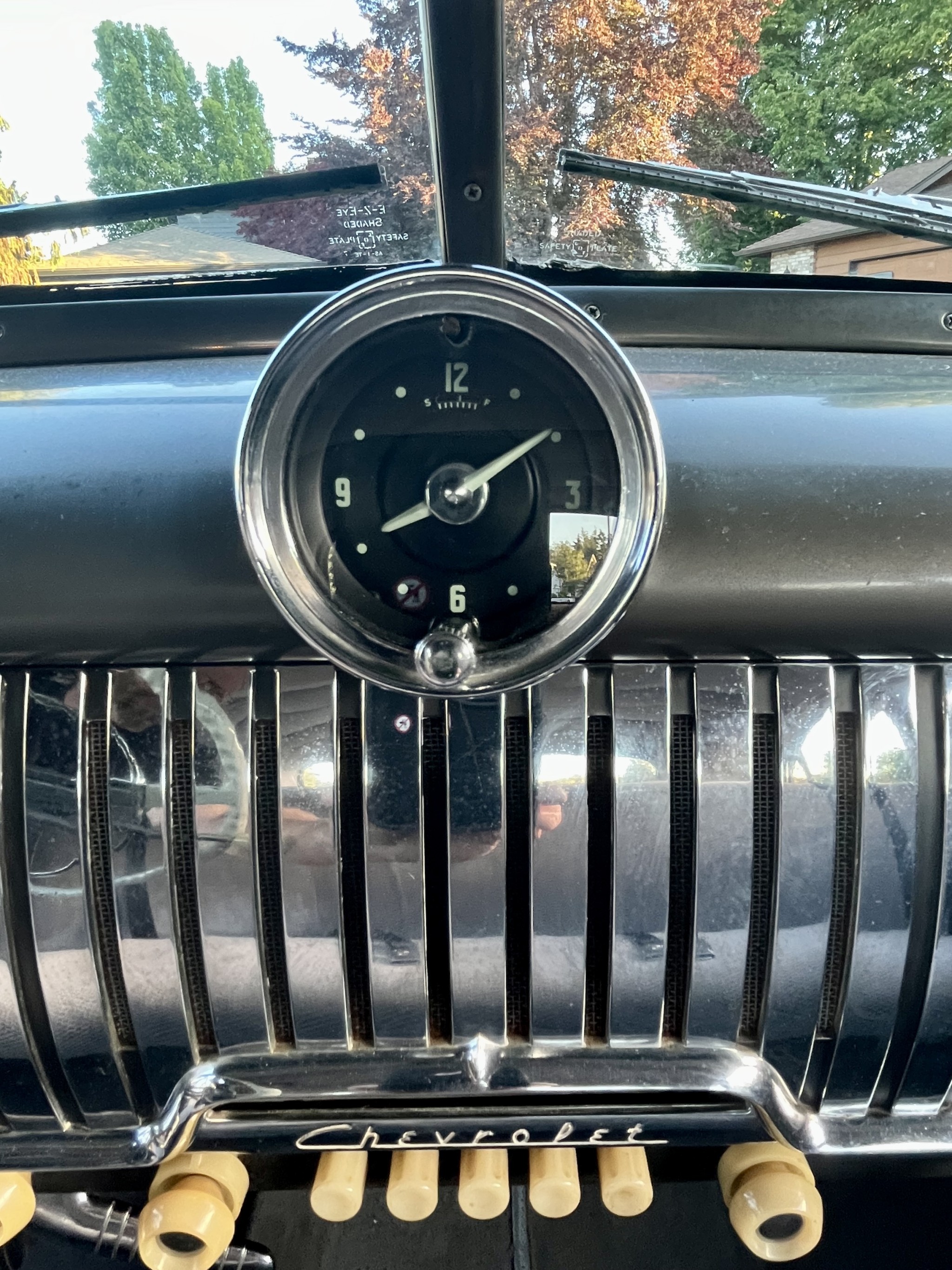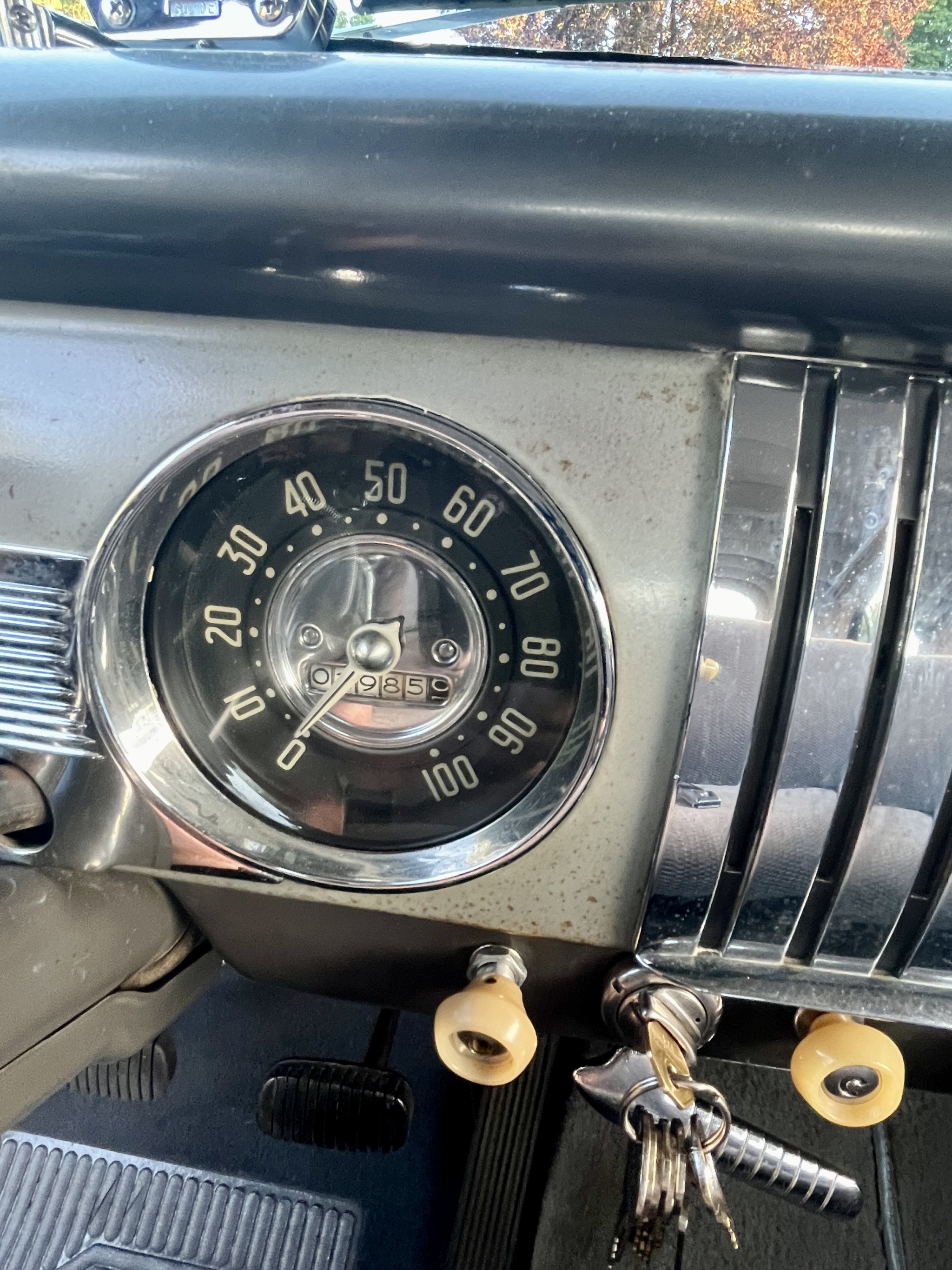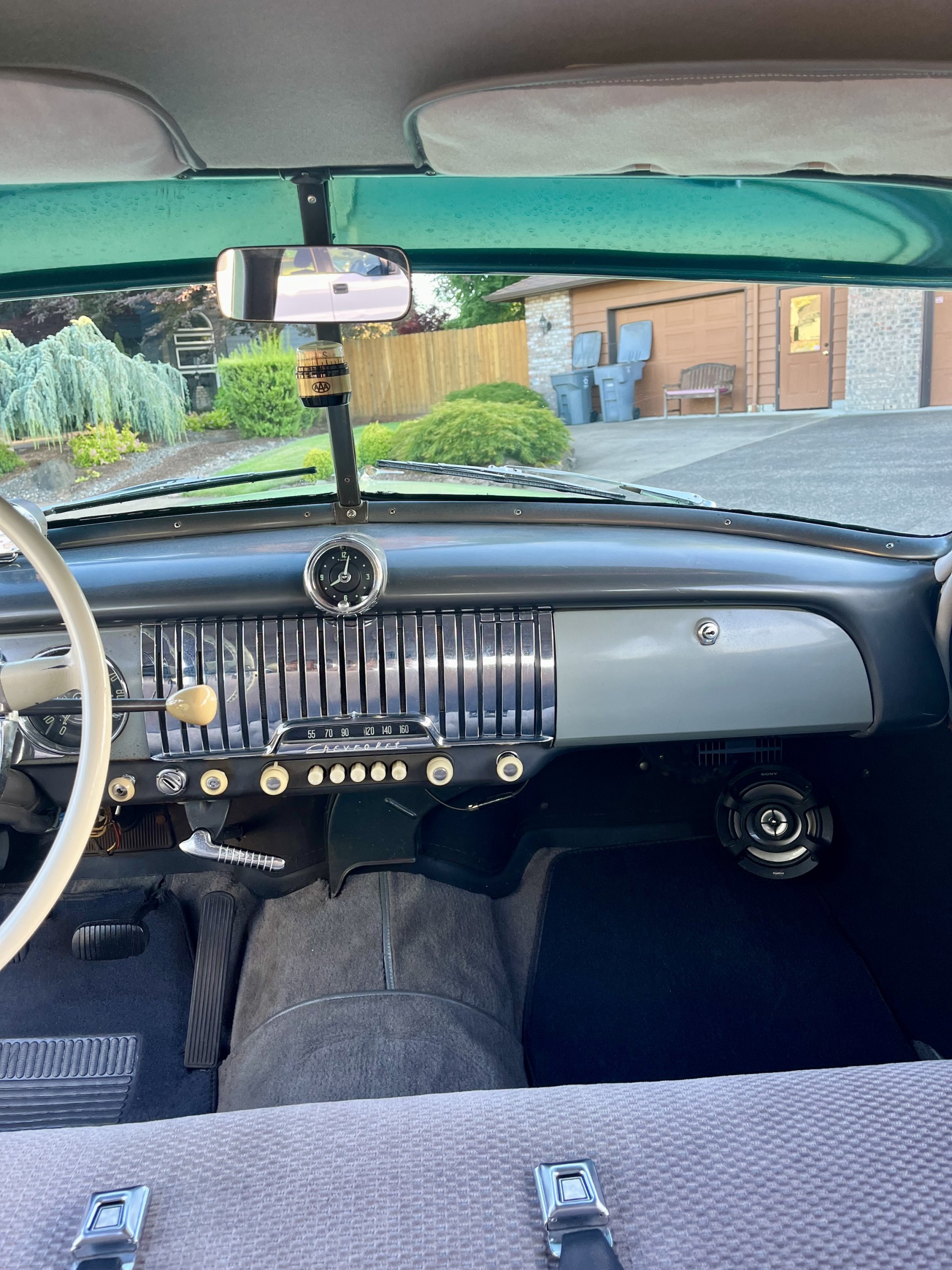 This is a wonderful restoration Jeff, and a labor of love I imagine. She is absolutely beautiful, and if I were in a position to give her a new home I definitely would, column shift and all.. which I do know how to drive btw, and I’ve driven a car with the steering wheel ball attachment. I always thought those were cool. What is the chrome on the dash though? I’ve never seen one before.
